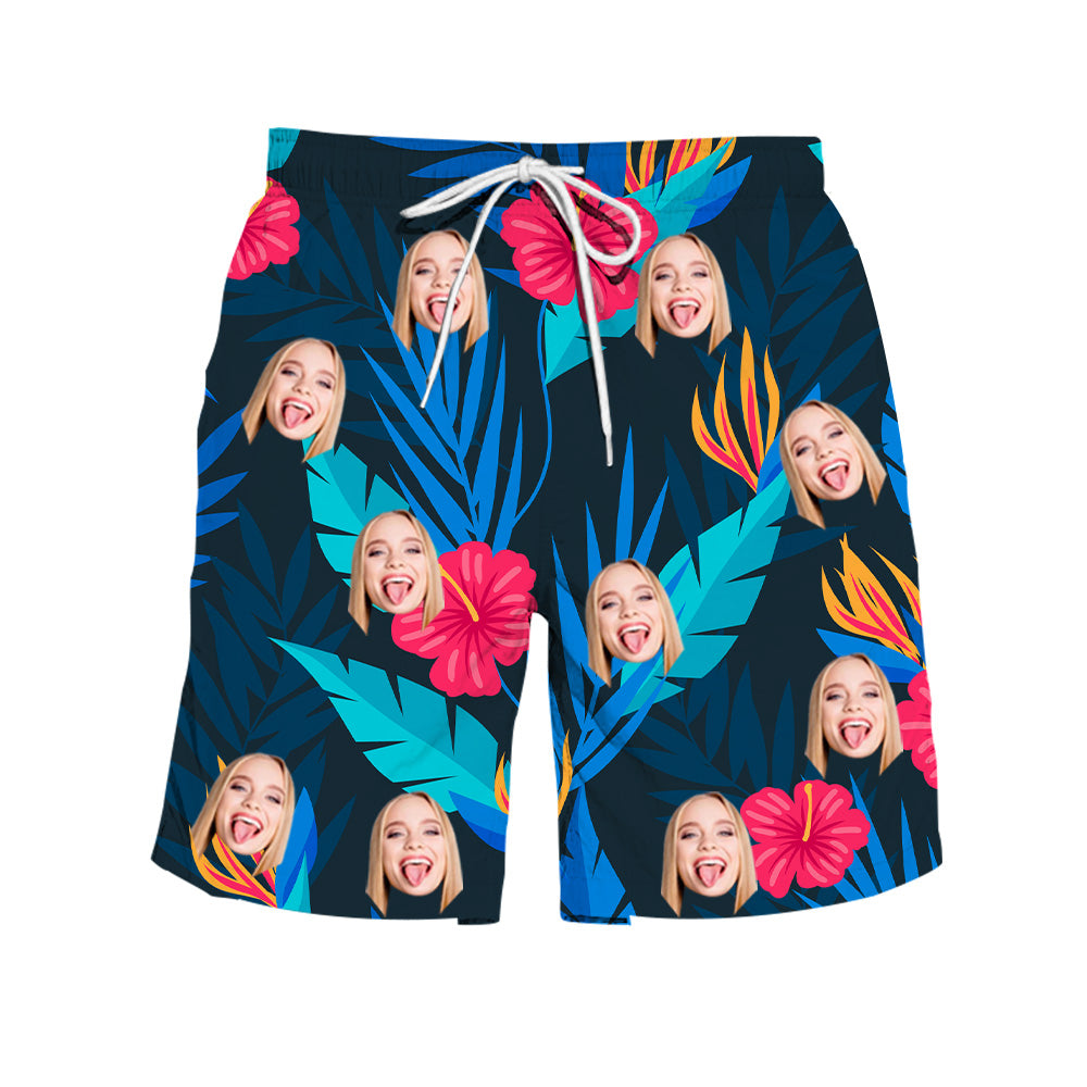 - Either to get a smile out of you or to use every day, you are going to love our custom beach shorts with photo. They are made with the best material and super soft you will enjoy wearing. Customize your beach shorts with your favorite photo face and make the perfect gift! Make the perfect beach shorts for family and friends that they will never forget about.