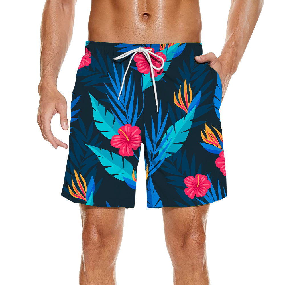 (Tax Included) Custom Face Palm Leaf & Tropical Flower Beach Shorts For Island Getaways