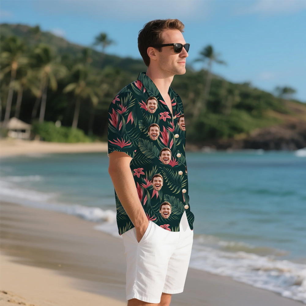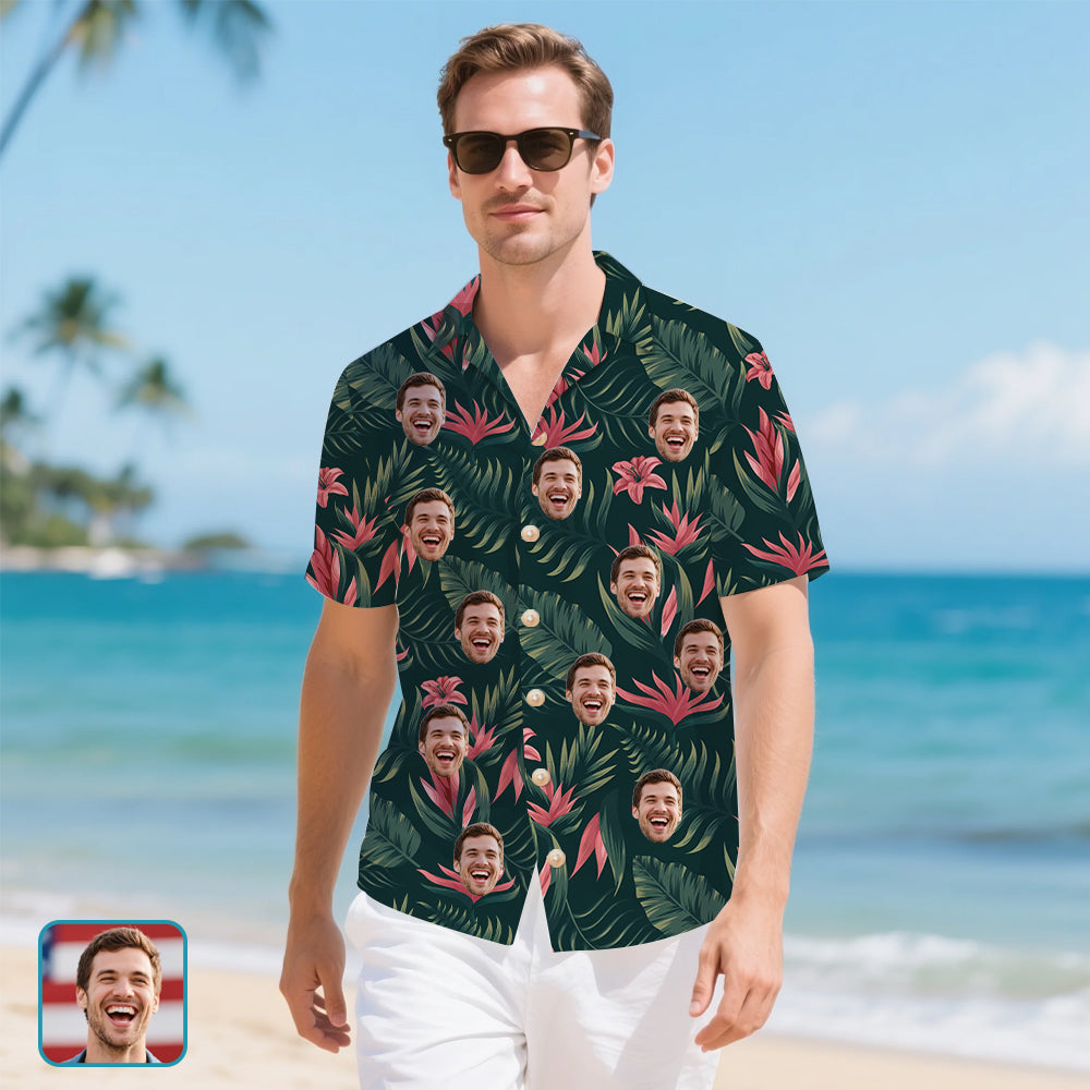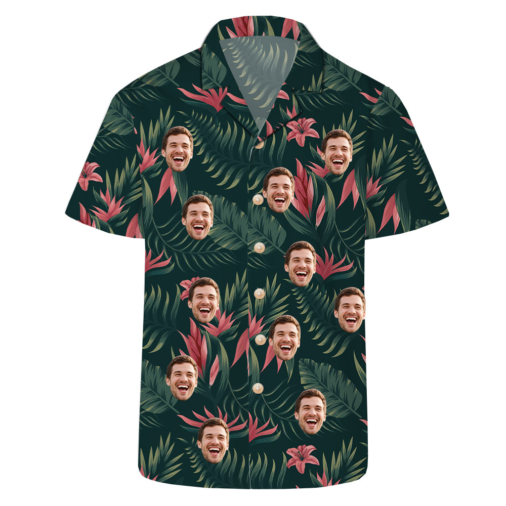 (Tax Included) Custom Face Party-Ready Hawaiian Shirt With Blooming Flowers & Exotic Leaves
