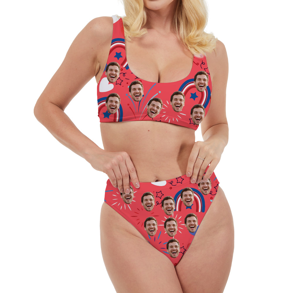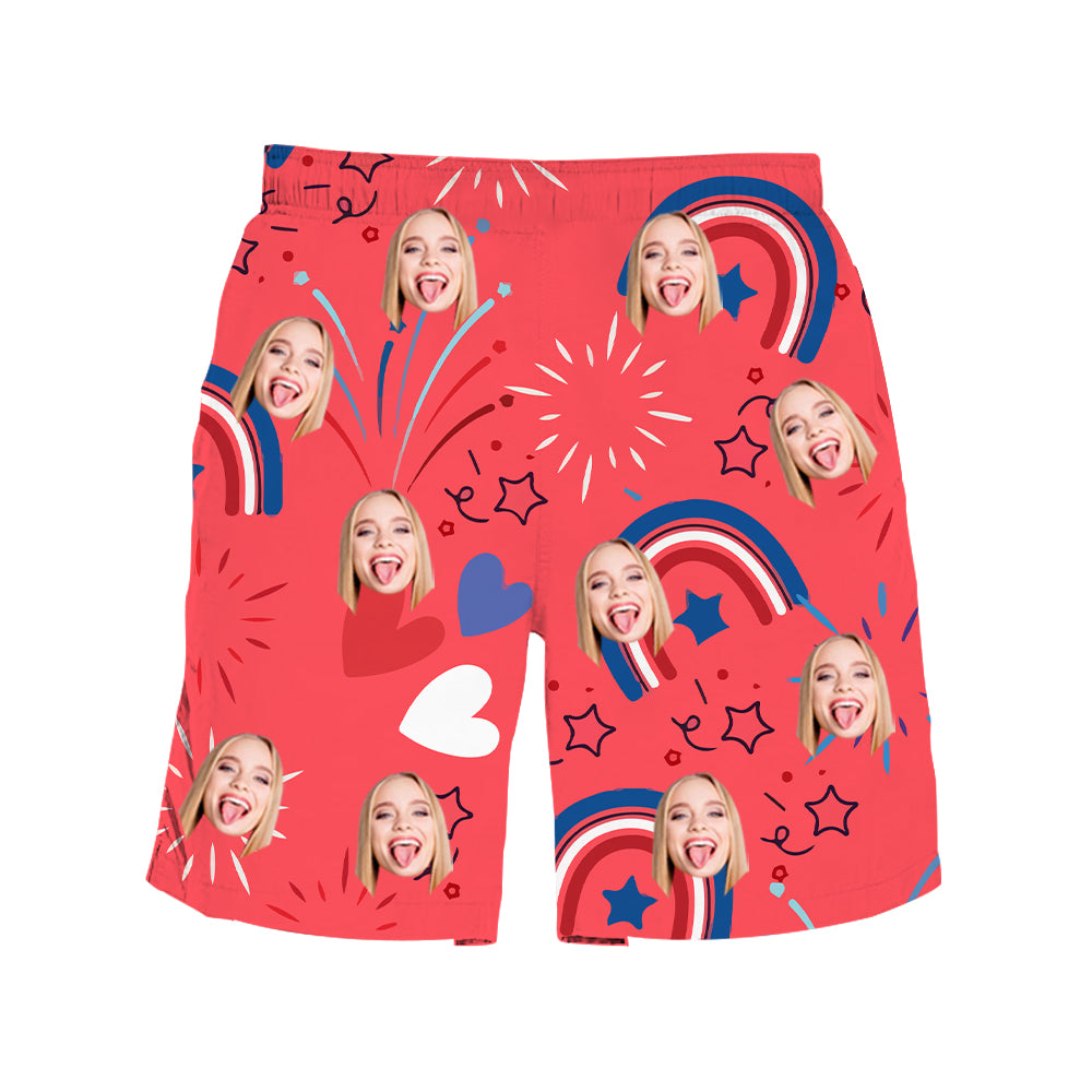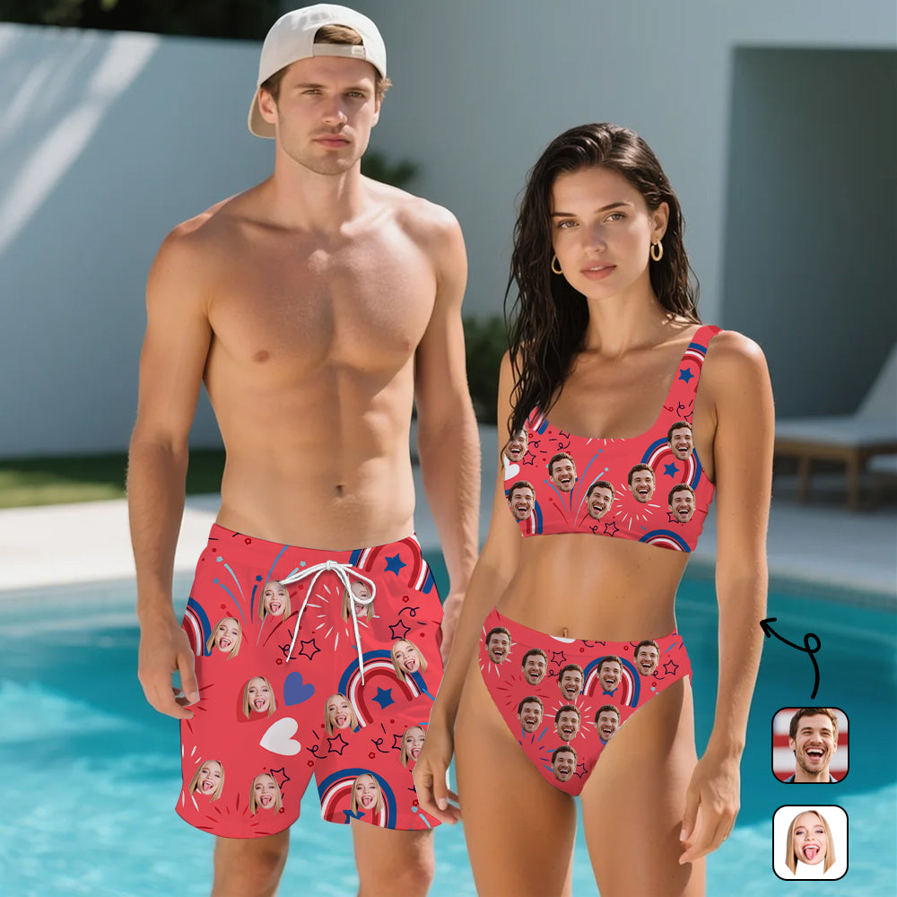 (Tax Included) Custom Face Patriotic Firework Print Swim Set For 4th July Celebrations