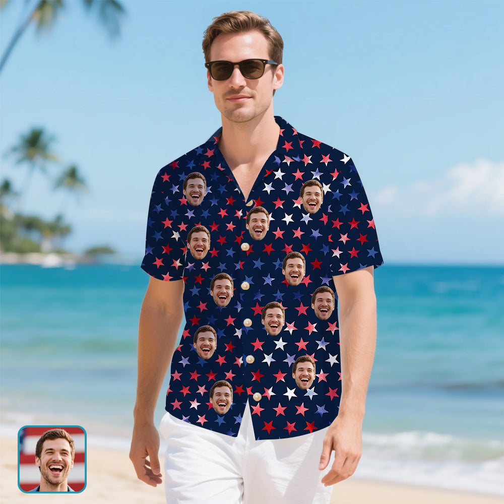 (Tax Included) Custom Face Personalized Stars Aloha Shirt For Festive Summer Vacation Style