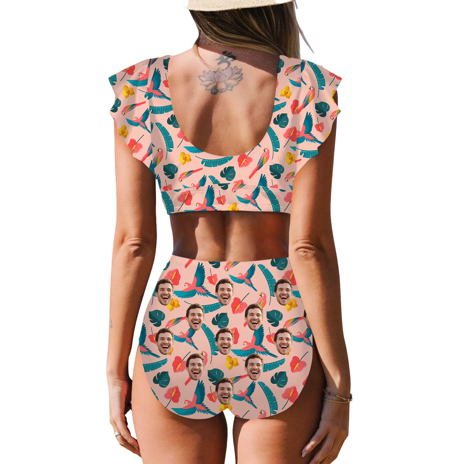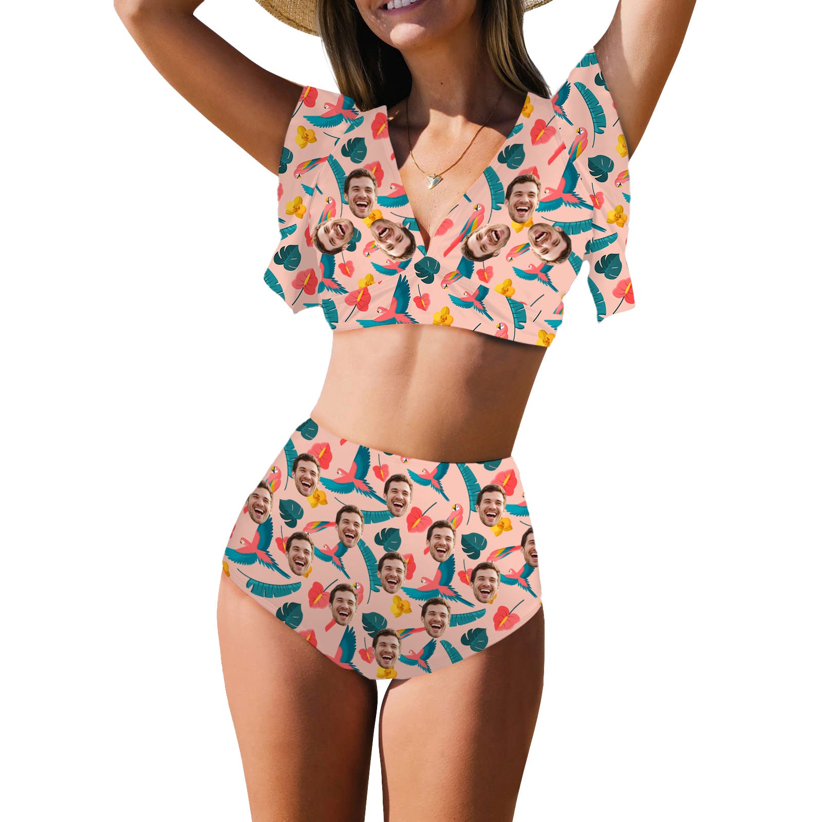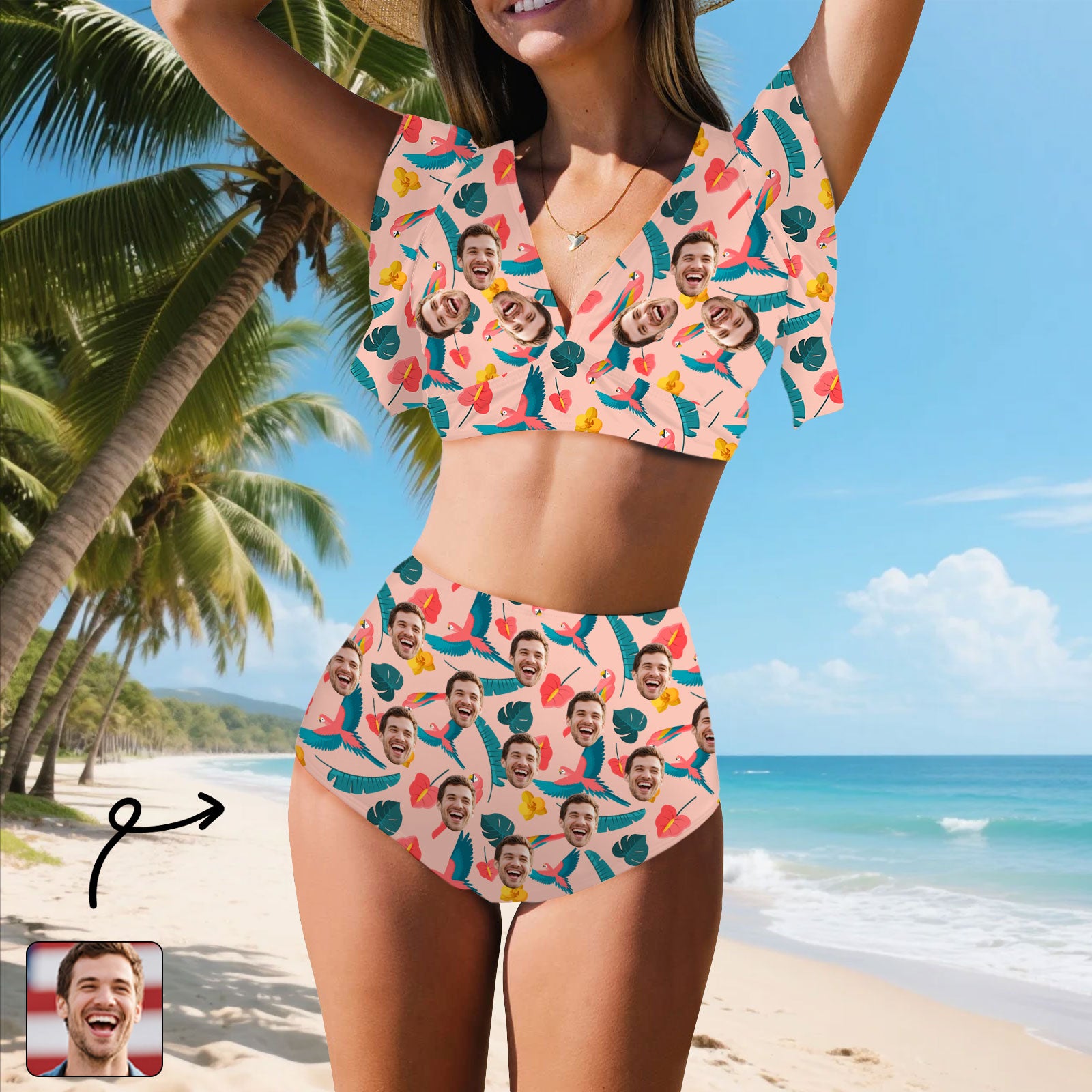 (Tax Included) Custom Face Pink Parrot Bikini - Vibrant Portrait Beach Style