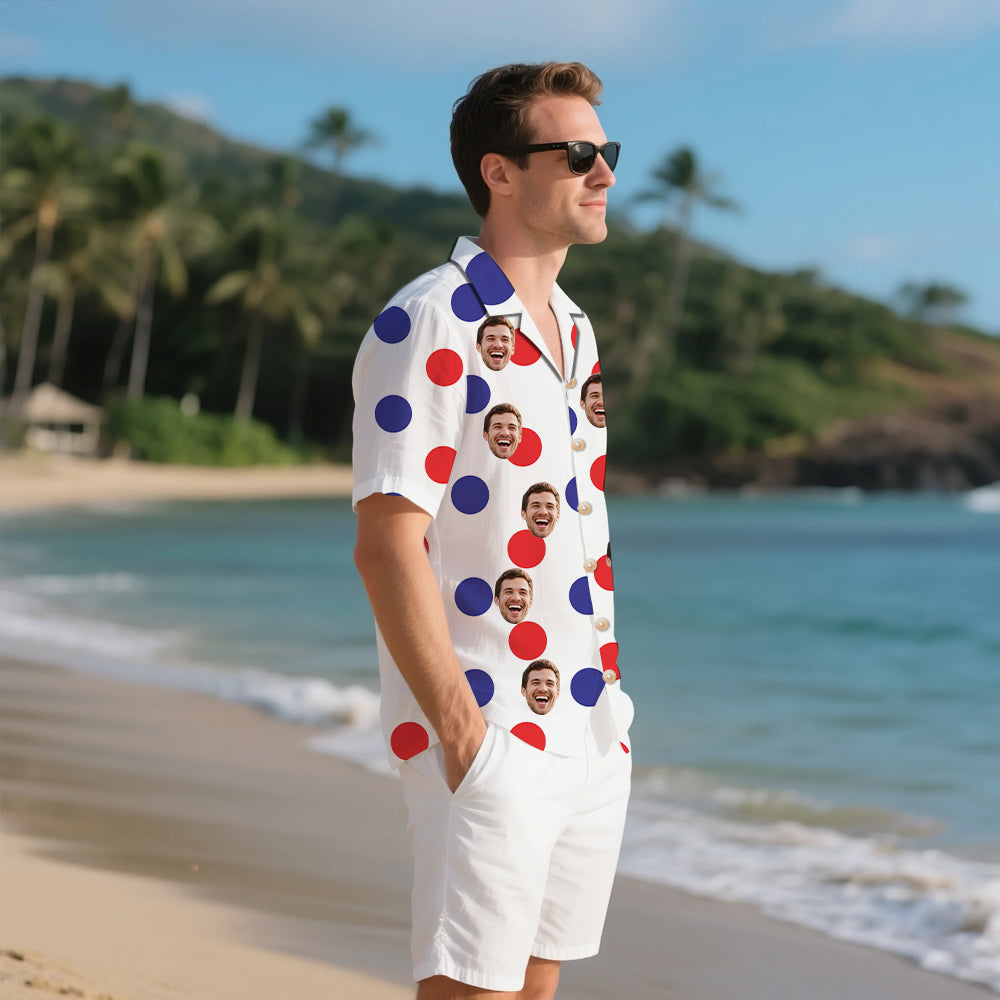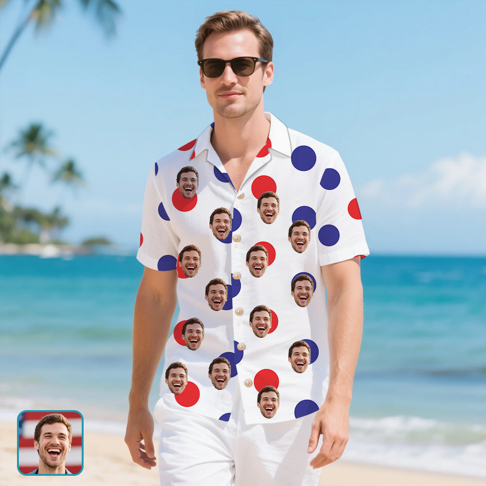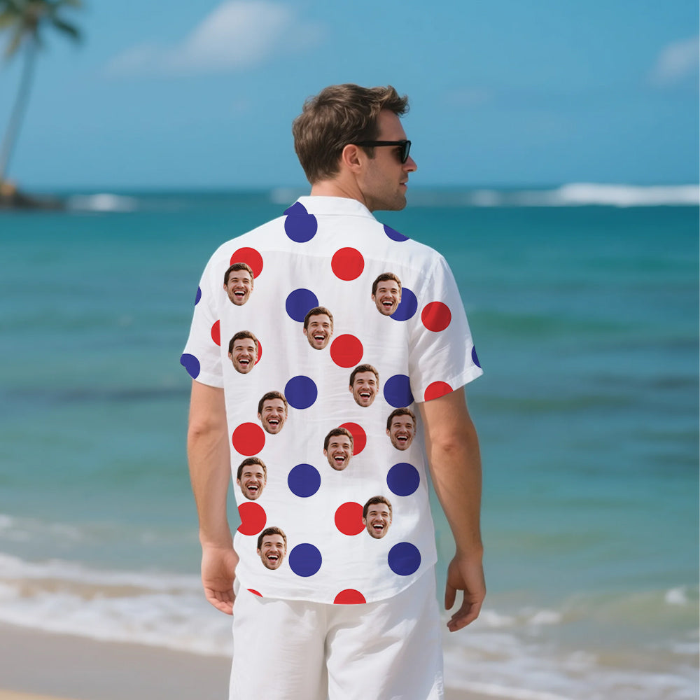 (Tax Included) Custom Face Playful Polka Dot Print Hawaiian Shirt For Summer Vacation Vibes
