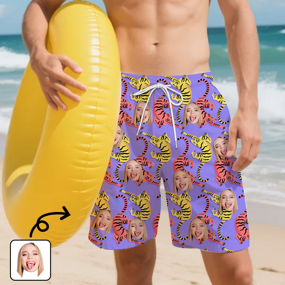 - Either to get a smile out of you or to use every day, you are going to love our custom beach shorts with photo. They are made with the best material and super soft you will enjoy wearing. Customize your beach shorts with your favorite photo face and make the perfect gift! Make the perfect beach shorts for family and friends that they will never forget about.