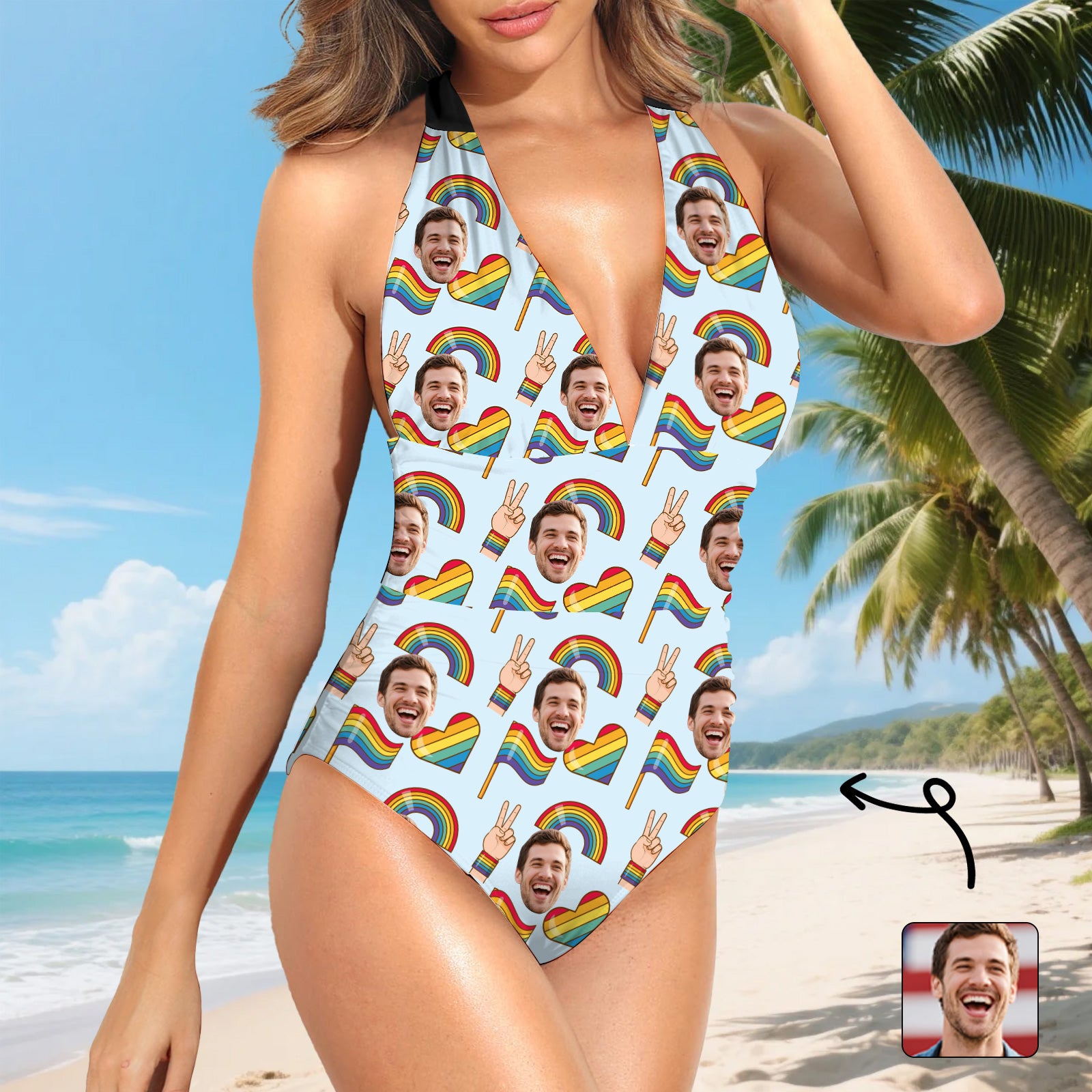 (Tax Included) Custom Face Rainbow Swimsuit - Vibrant Portrait Swimwear