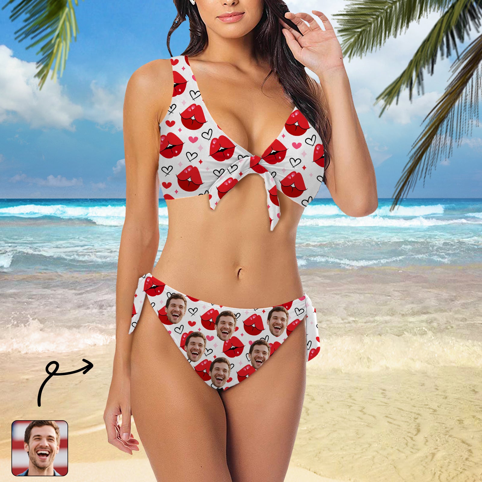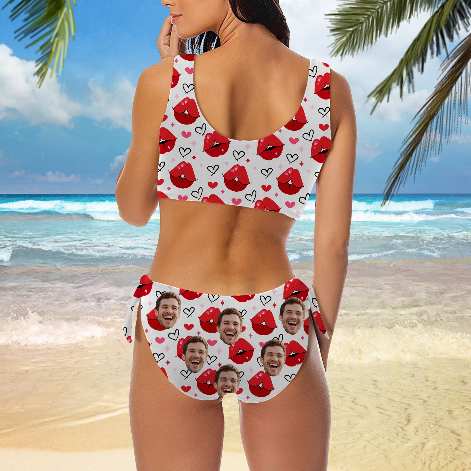 (Tax Included) Custom Face Red Lips & Hearts Swimsuit - Lovely Portrait Swimwear