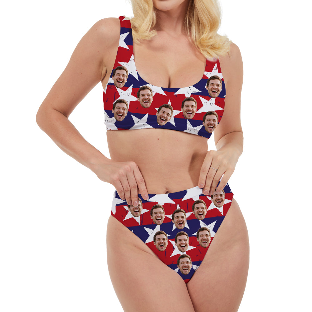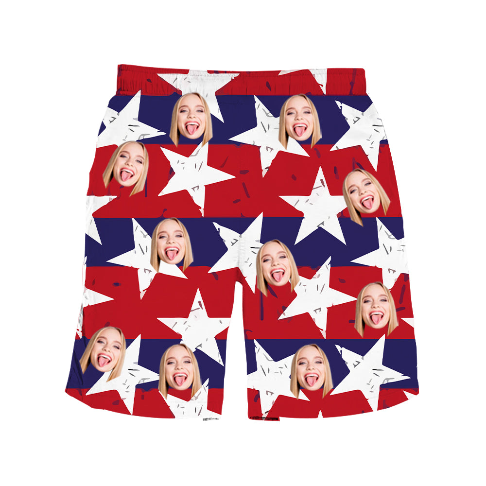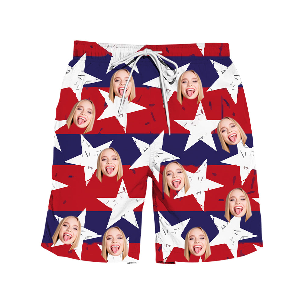 (Tax Included) Custom Face Red & White Star Swimwear For Festive Pool Party Fun