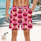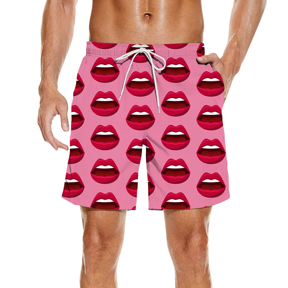 (Tax Included) Custom Face Sexy Red Lips Print Beach Shorts
