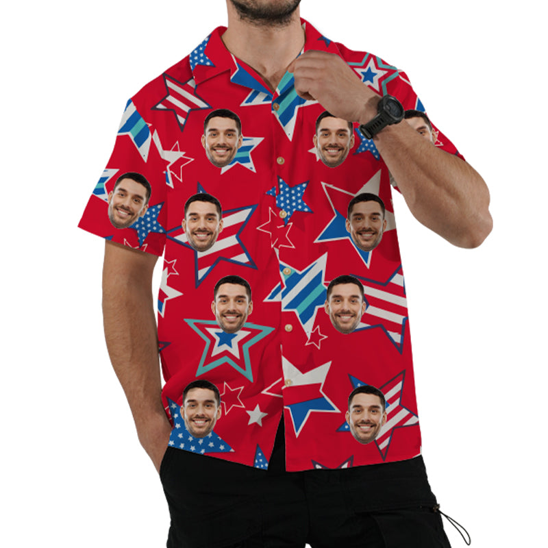 (Tax Included) Custom Face Shirts Personalized Independence Day Hawaiian Shirts Unique Holiday Gifts