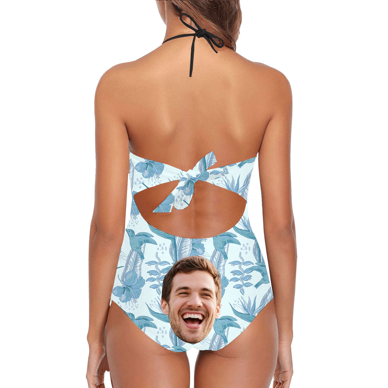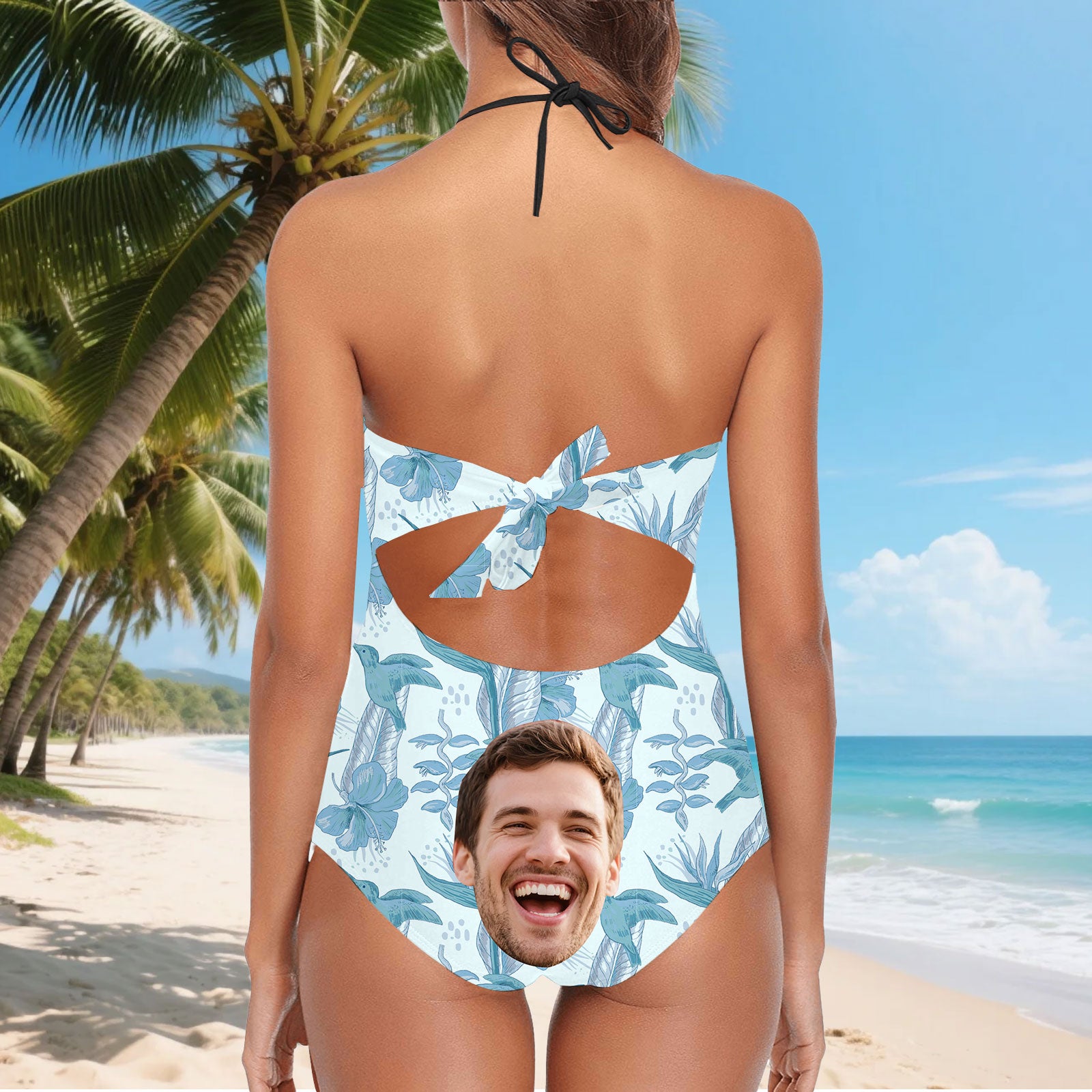 (Tax Included) Custom Face Sky Blue Floral Swimsuit - Fresh Portrait Style