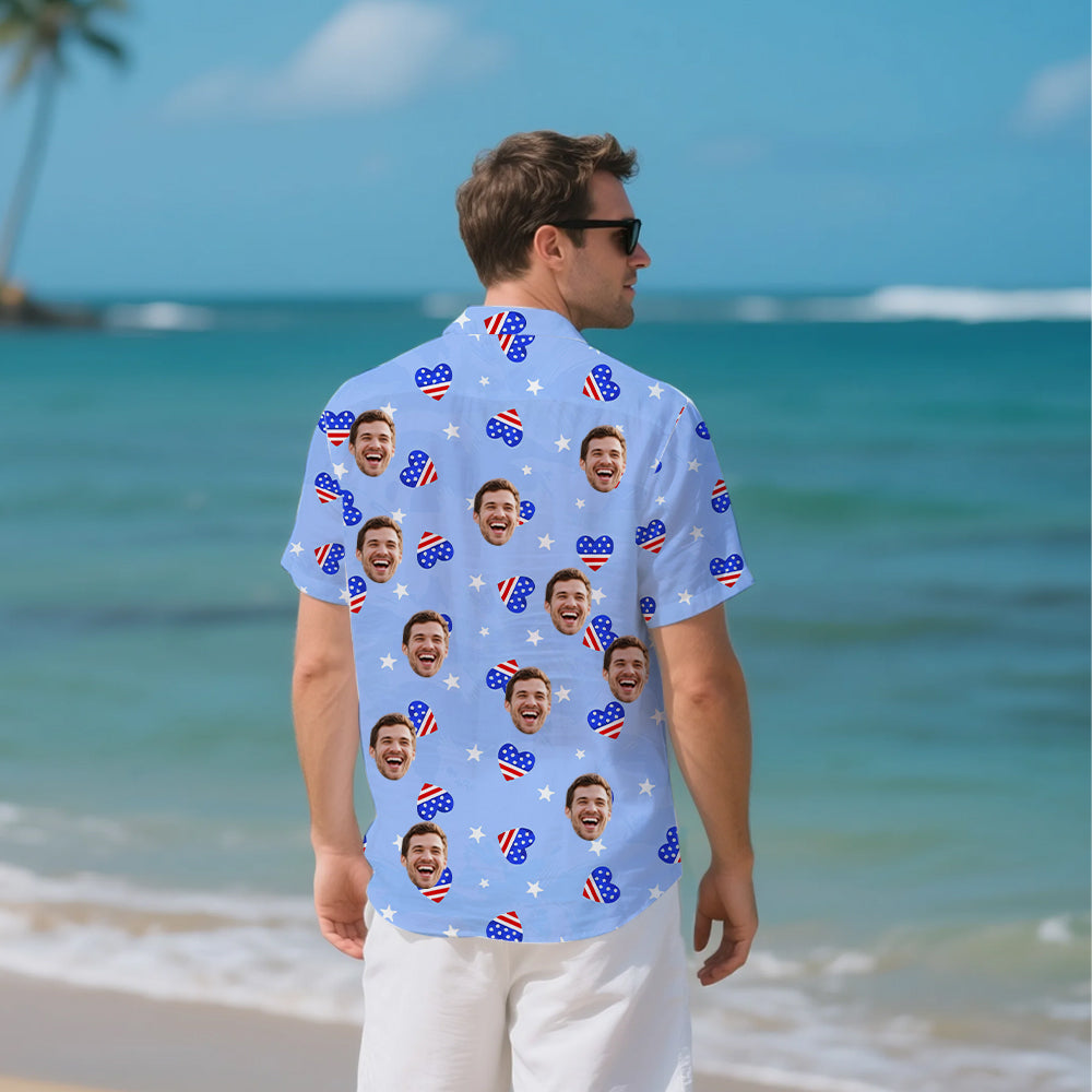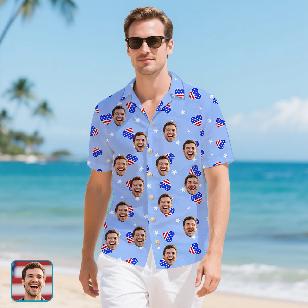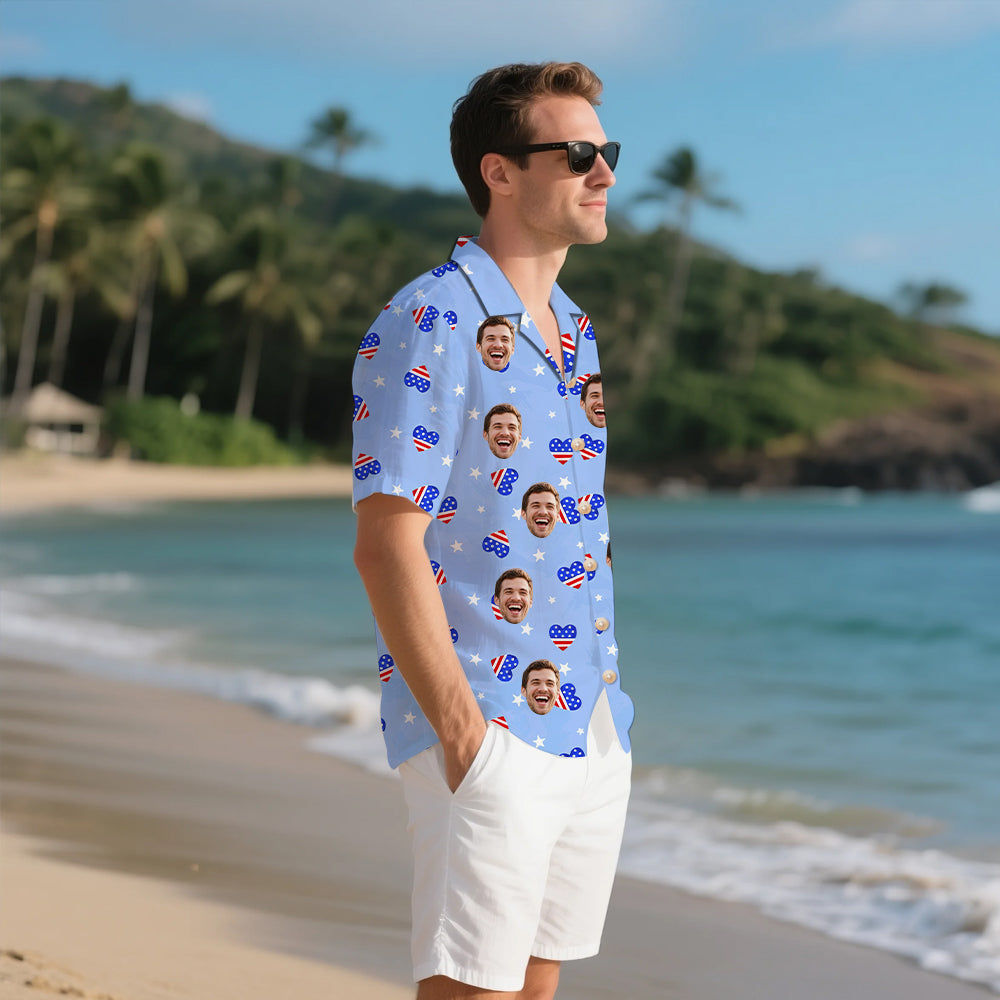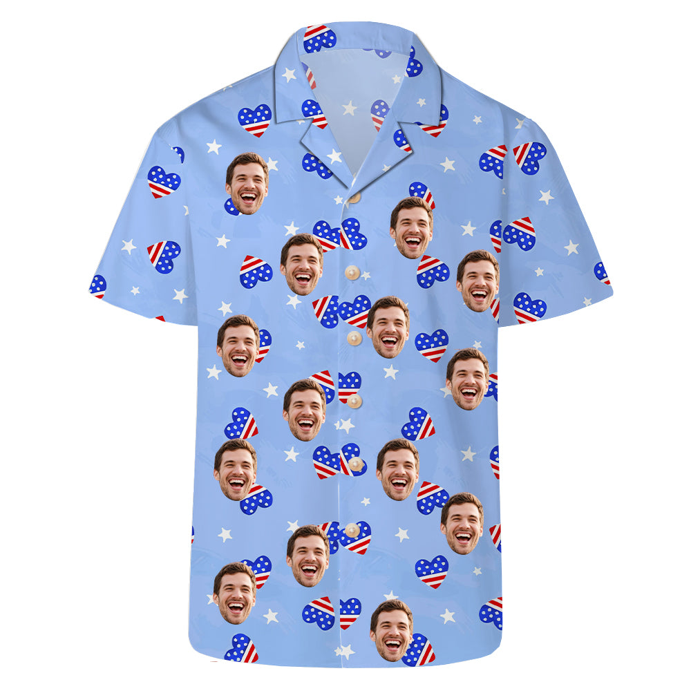 (Tax Included) Custom Face Sky Blue Patriotic Heart Design Shirt For Backyard Celebration Vibes