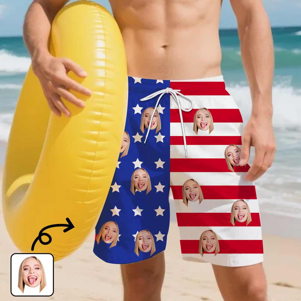 - Either to get a smile out of you or to use every day, you are going to love our custom beach shorts with photo. They are made with the best material and super soft you will enjoy wearing. Customize your beach shorts with your favorite photo face and make the perfect gift! Make the perfect beach shorts for family and friends that they will never forget about.