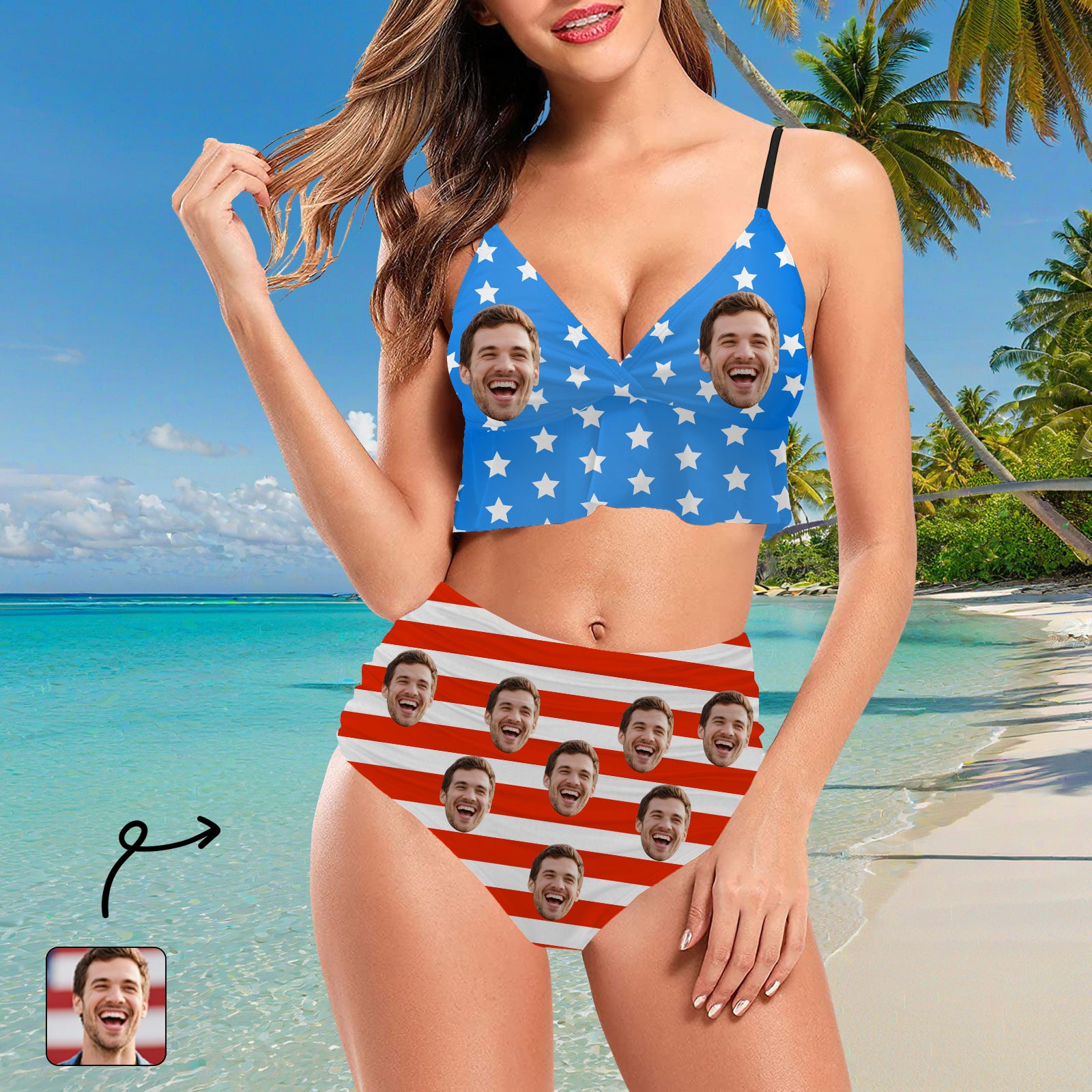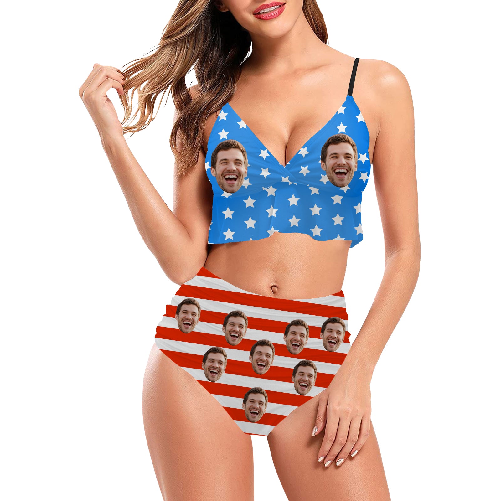 (Tax Included) Custom Face Stars & Stripes Bikini Set - Patriotic Portrait Swimwear With American Flair