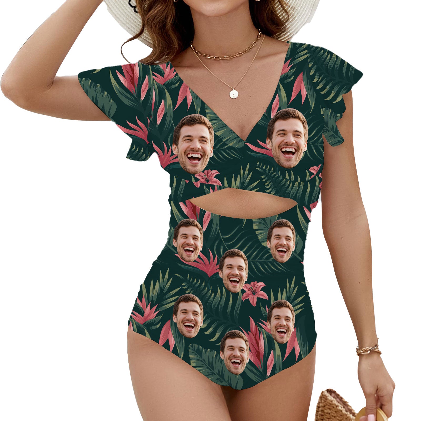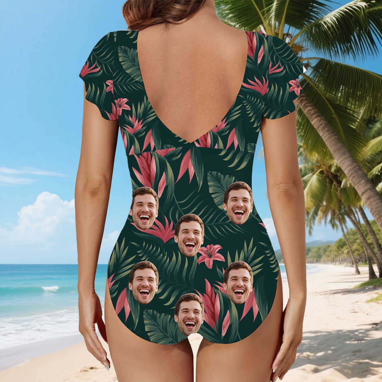 (Tax Included) Custom Face Tropical Floral Swimsuit - Exotic Holiday Style