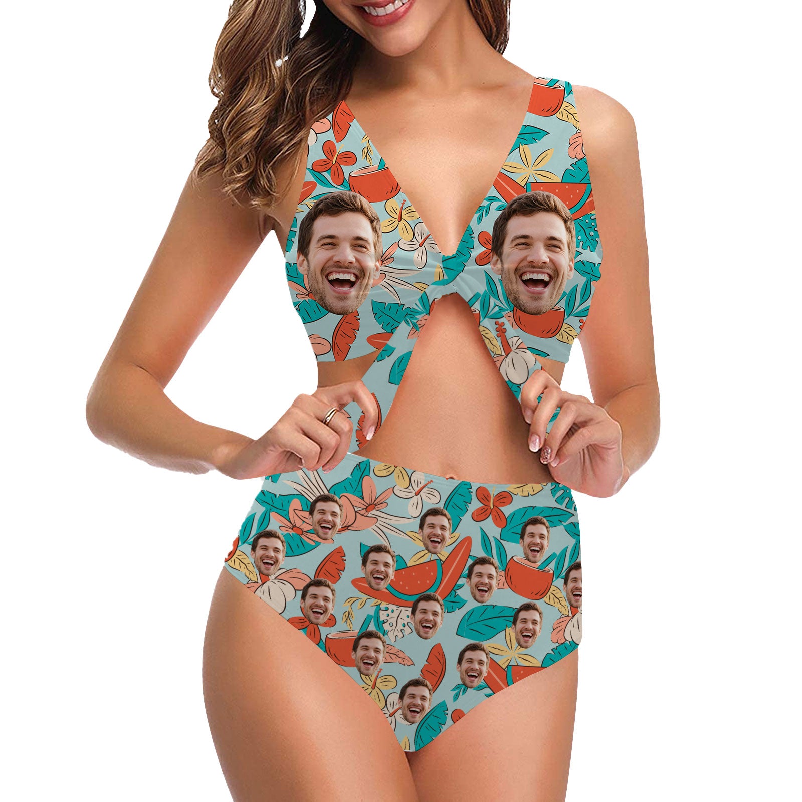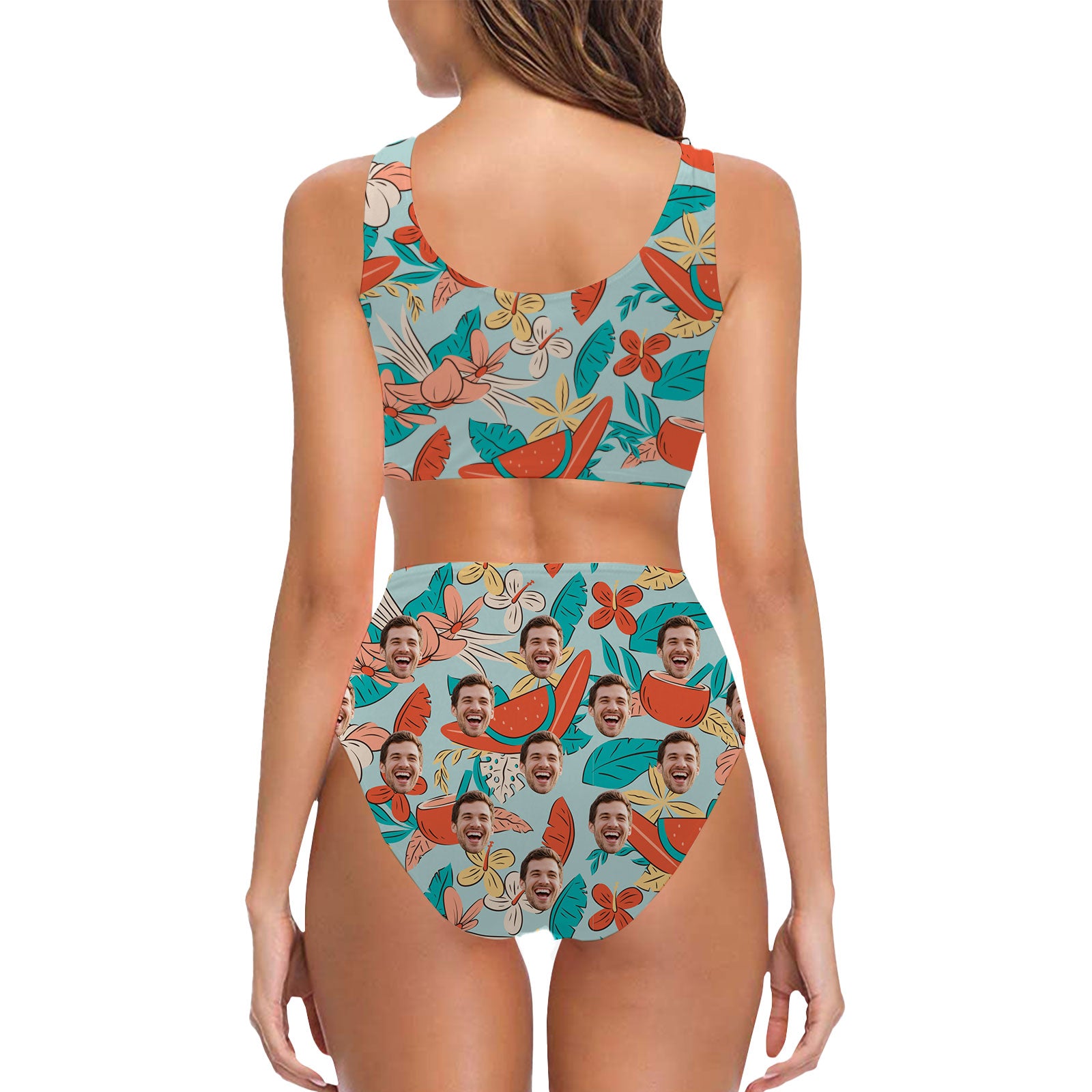 (Tax Included) Custom Face Tropical Fruit Swimsuit - Vibrant Floral Portrait Design