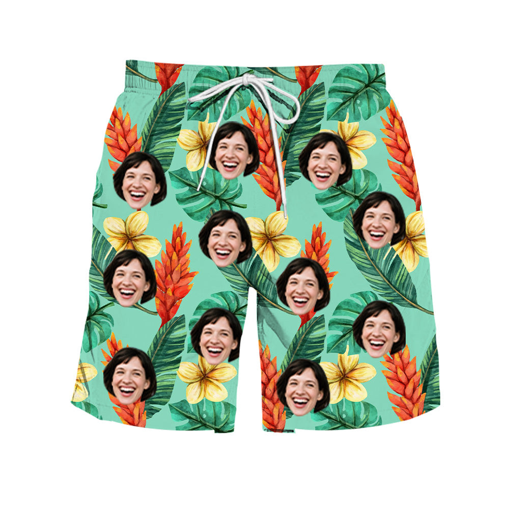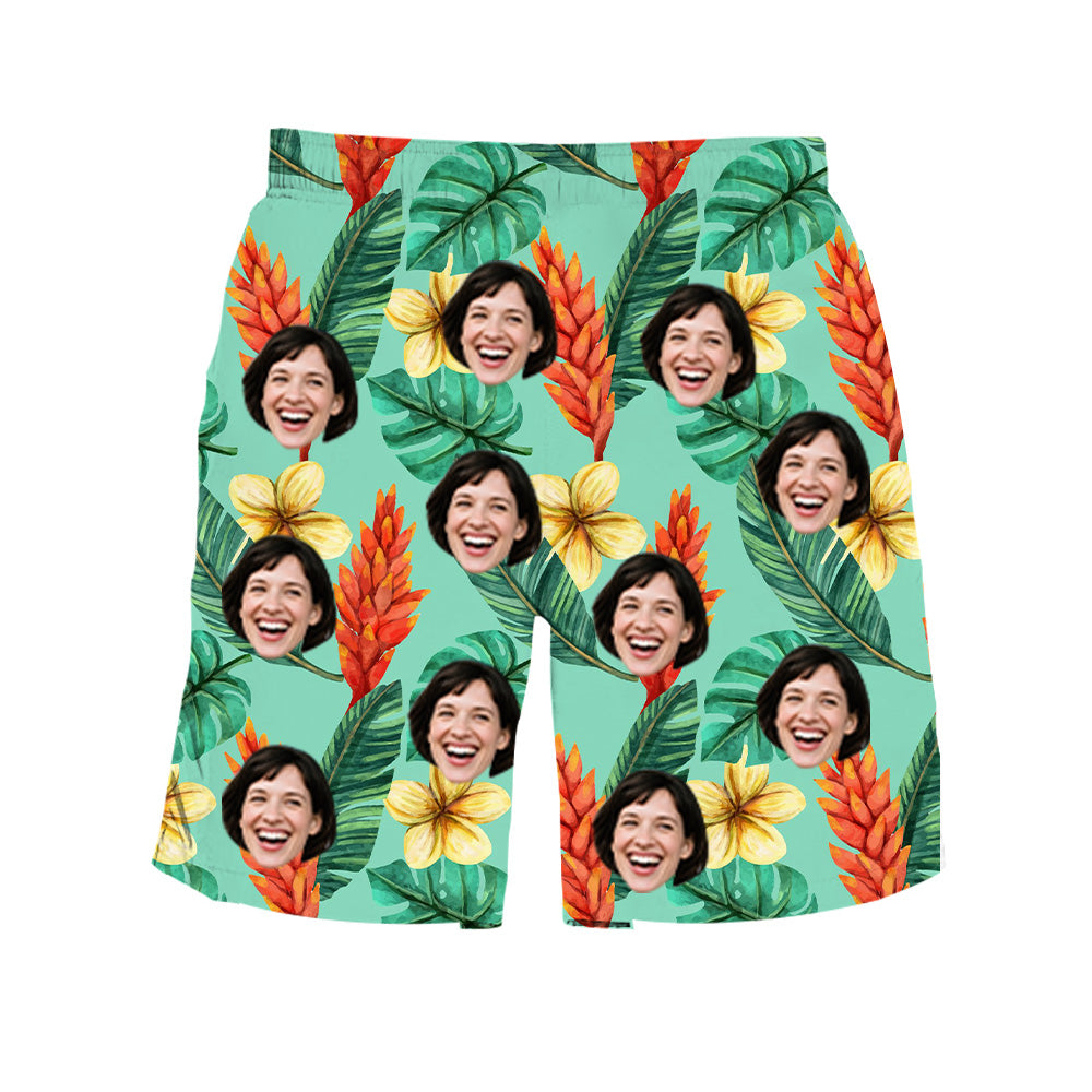 - Either to get a smile out of you or to use every day, you are going to love our custom beach shorts with photo. They are made with the best material and super soft you will enjoy wearing. Customize your beach shorts with your favorite photo face and make the perfect gift! Make the perfect beach shorts for family and friends that they will never forget about.