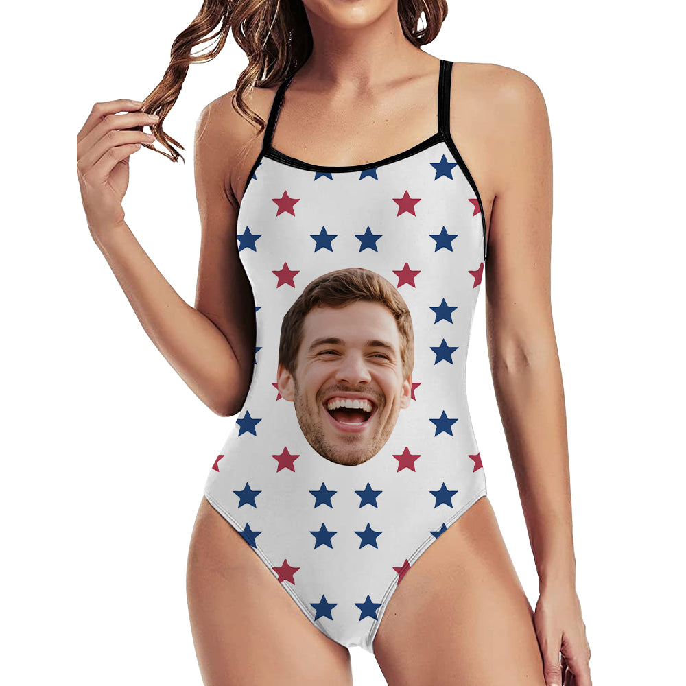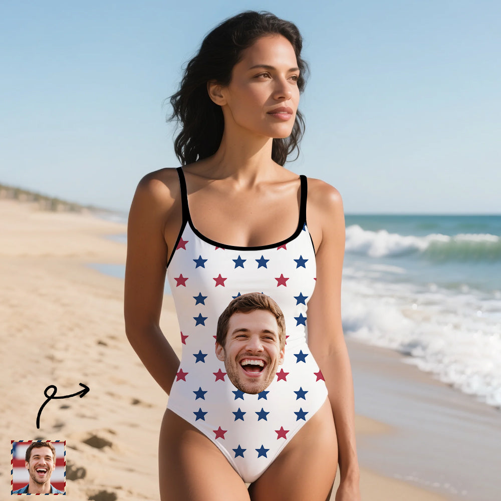 (Tax Included) Custom Face USA Swimsuit - Rock The Red & White & Blue This 4th Of July