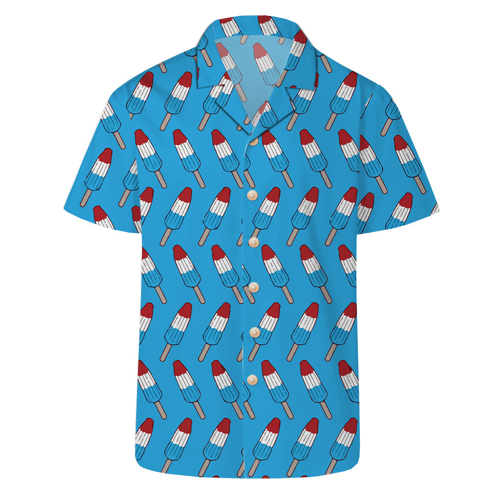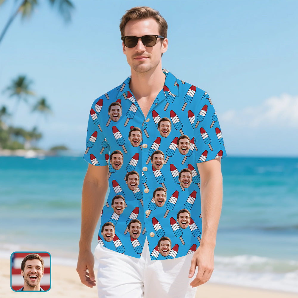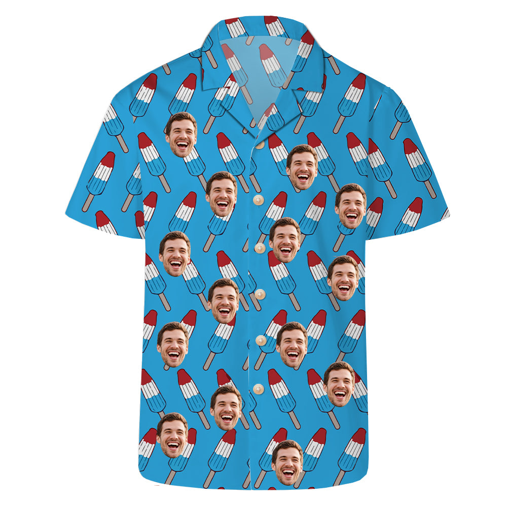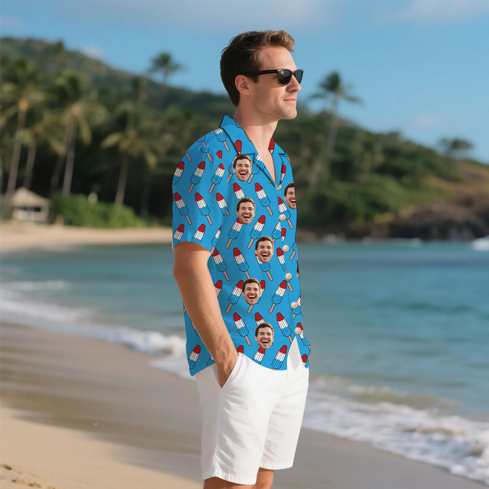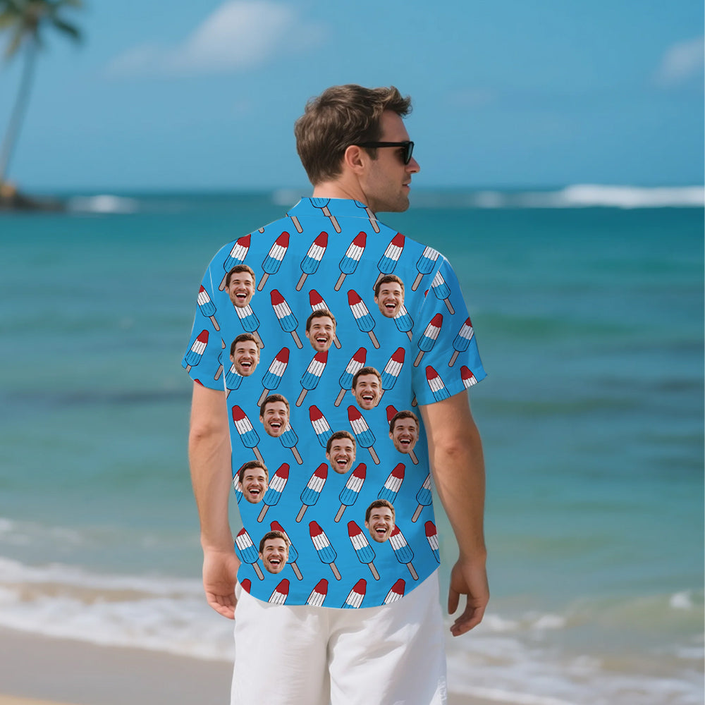 (Tax Included) Custom Face Vibrant Blue Popsicle Print Hawaiian Shirt For Pool Party Fun