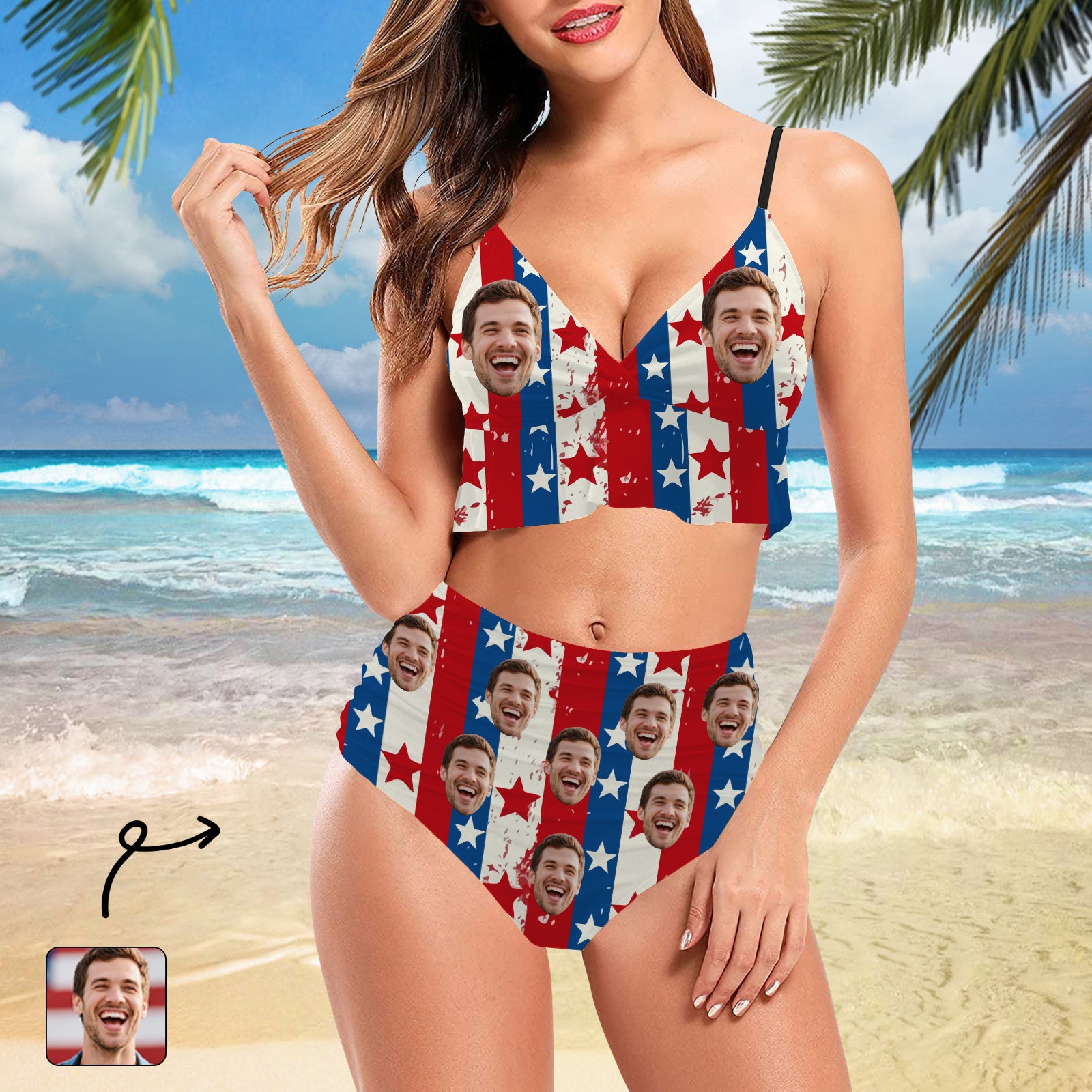 (Tax Included) Custom Face Vintage Flag Swimsuit - Distressed Portrait Style