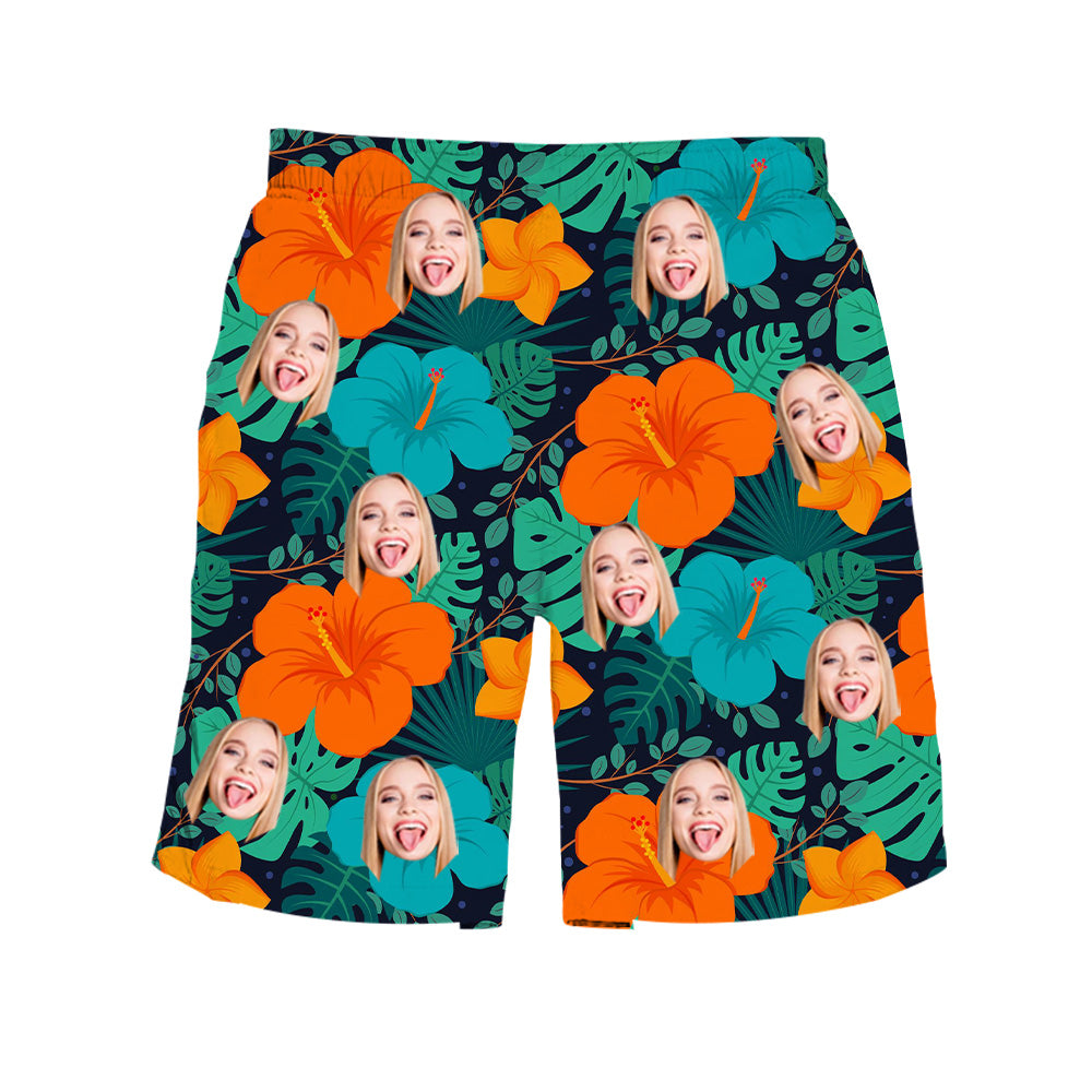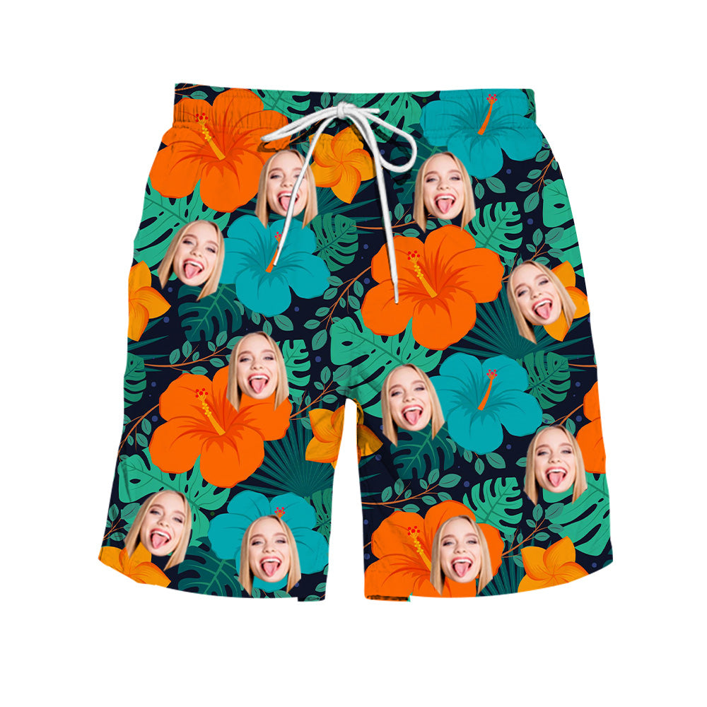 - Either to get a smile out of you or to use every day, you are going to love our custom beach shorts with photo. They are made with the best material and super soft you will enjoy wearing. Customize your beach shorts with your favorite photo face and make the perfect gift! Make the perfect beach shorts for family and friends that they will never forget about.