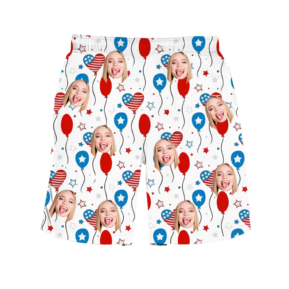 (Tax Included) Custom Face White Balloon Print Shorts - 4th July Celebration Emoji Style