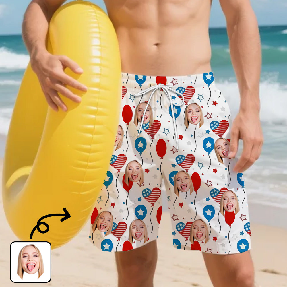 - Either to get a smile out of you or to use every day, you are going to love our custom beach shorts with photo. They are made with the best material and super soft you will enjoy wearing. Customize your beach shorts with your favorite photo face and make the perfect gift! Make the perfect beach shorts for family and friends that they will never forget about.