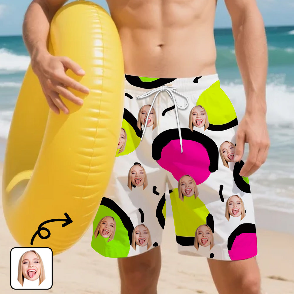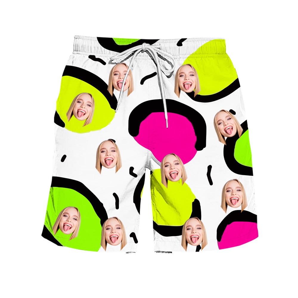 - Either to get a smile out of you or to use every day, you are going to love our custom beach shorts with photo. They are made with the best material and super soft you will enjoy wearing. Customize your beach shorts with your favorite photo face and make the perfect gift! Make the perfect beach shorts for family and friends that they will never forget about.
