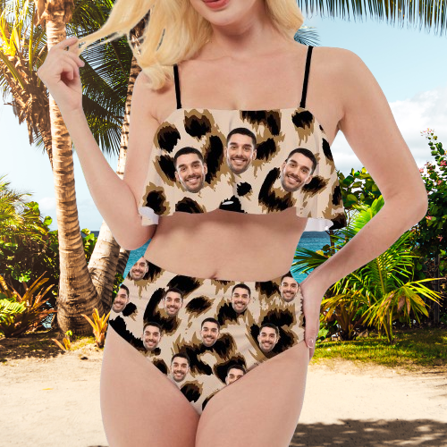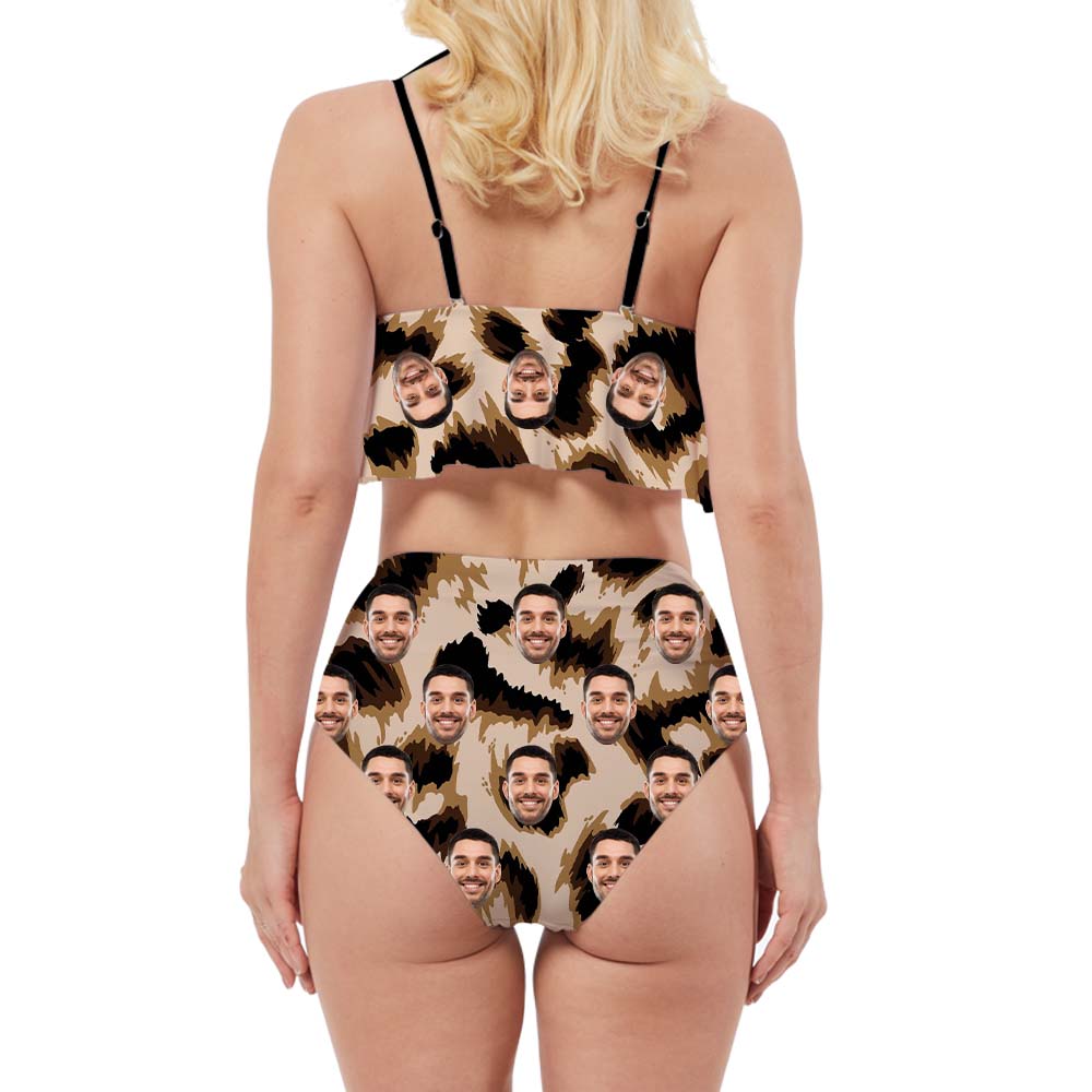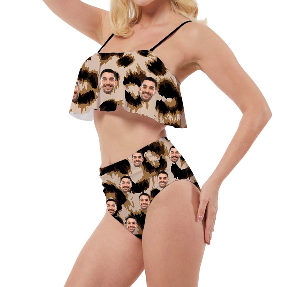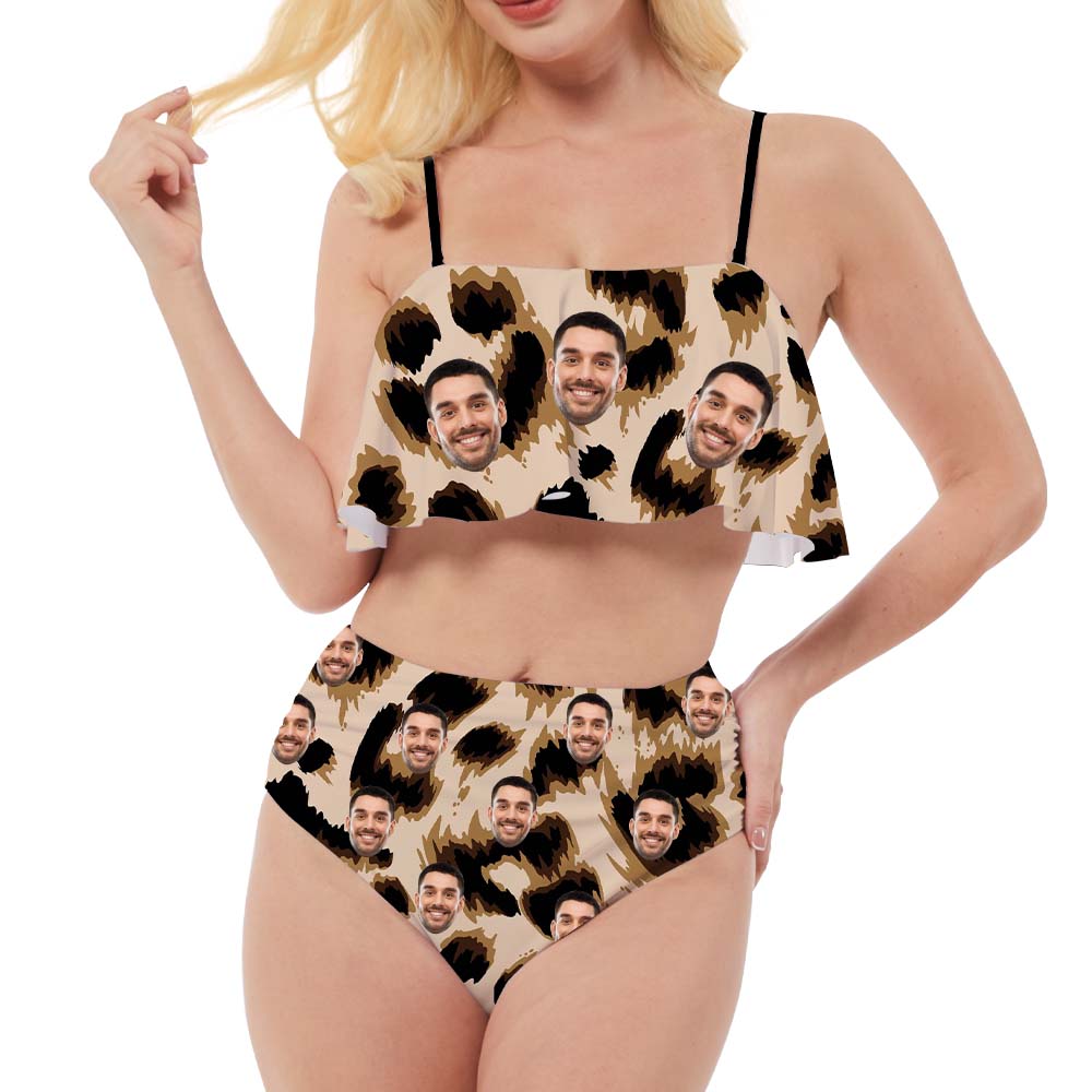 (Tax Included) Custom Leopard Face Swimsuit Ruffle Bathing Suit
