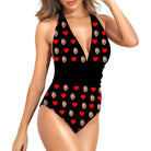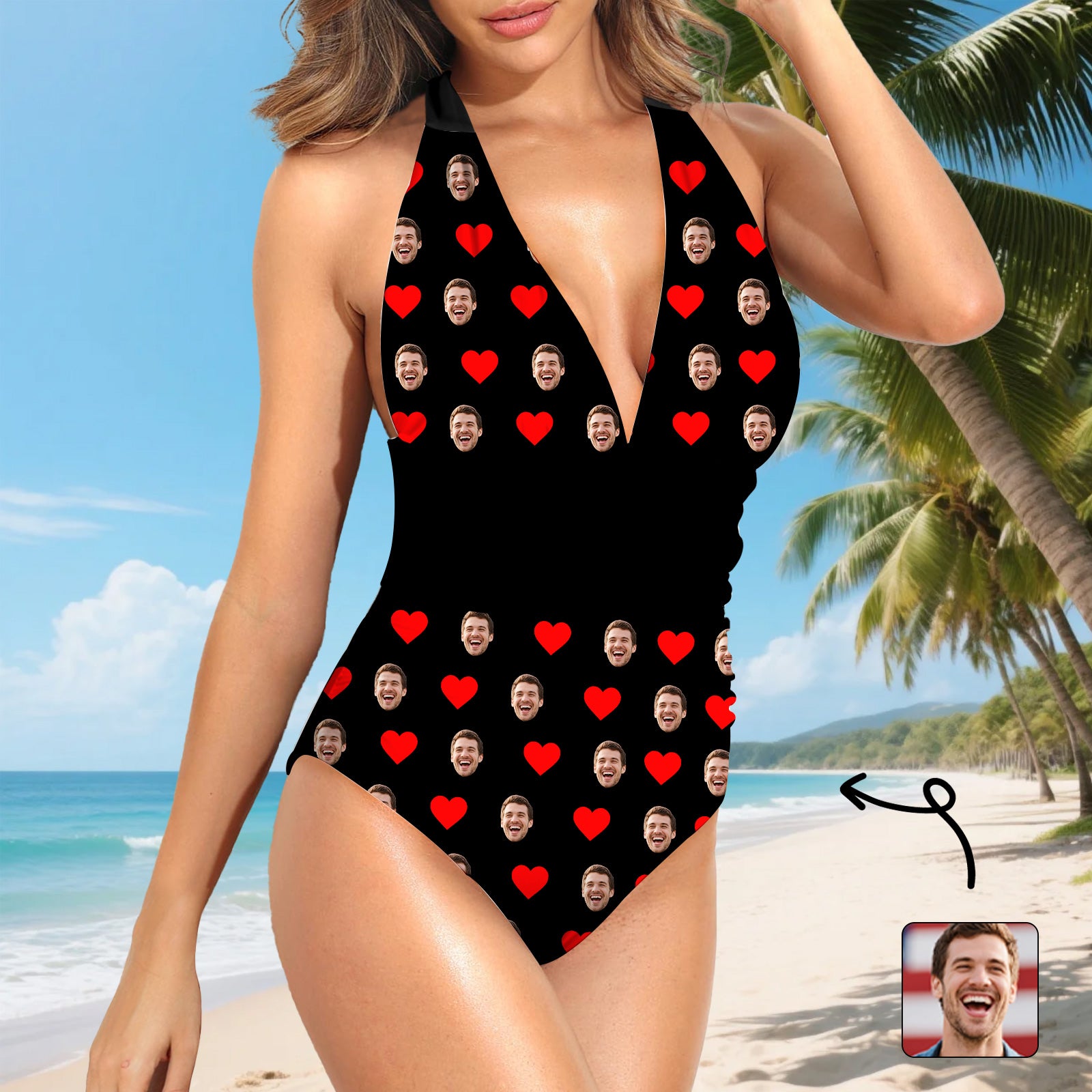 (Tax Included) Fashionable Black Swimsuit With Red Hearts & Custom Face Portrait
