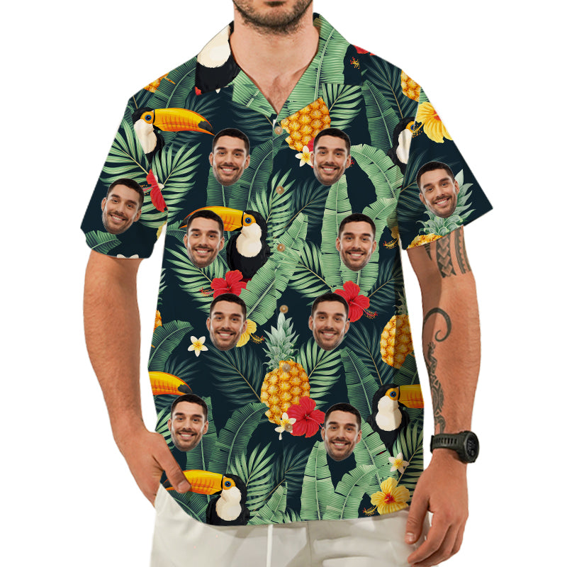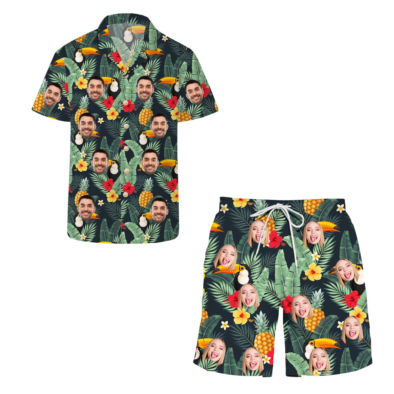 (Tax Included) Hawaiian Beach Outfits Bright Floral And Pineapple Prints Shirts & Shorts Beach Party Wear Summer Casual Outfits Customized Face