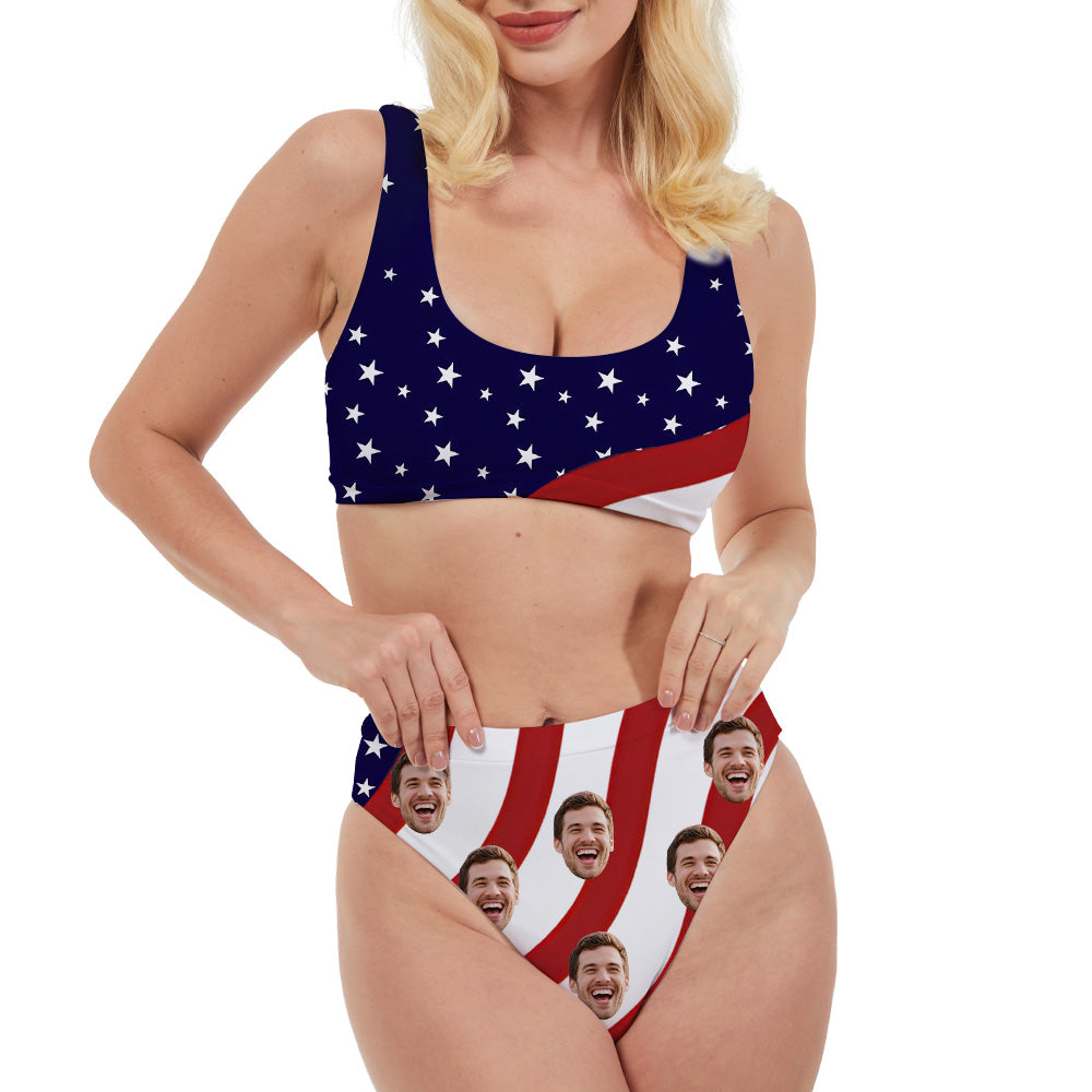 (Tax Included) Liberty & Glam - Bold Red&White & Blue Bikini Featuring Your Custom Face