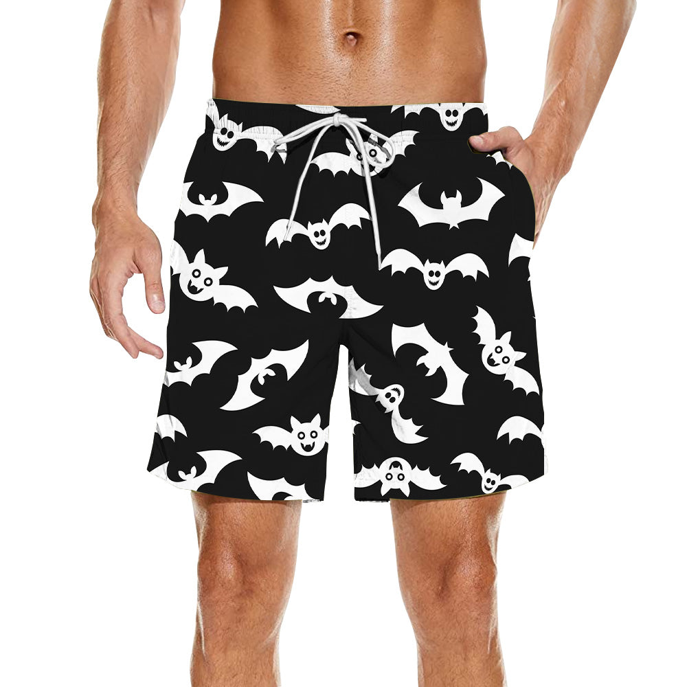 (Tax Included) Men's Beach Shorts Personalized Bat Design Soft Breathable Casual Wear Customizable Face Shape