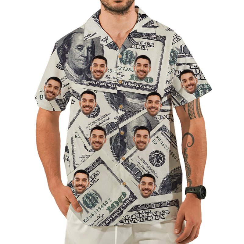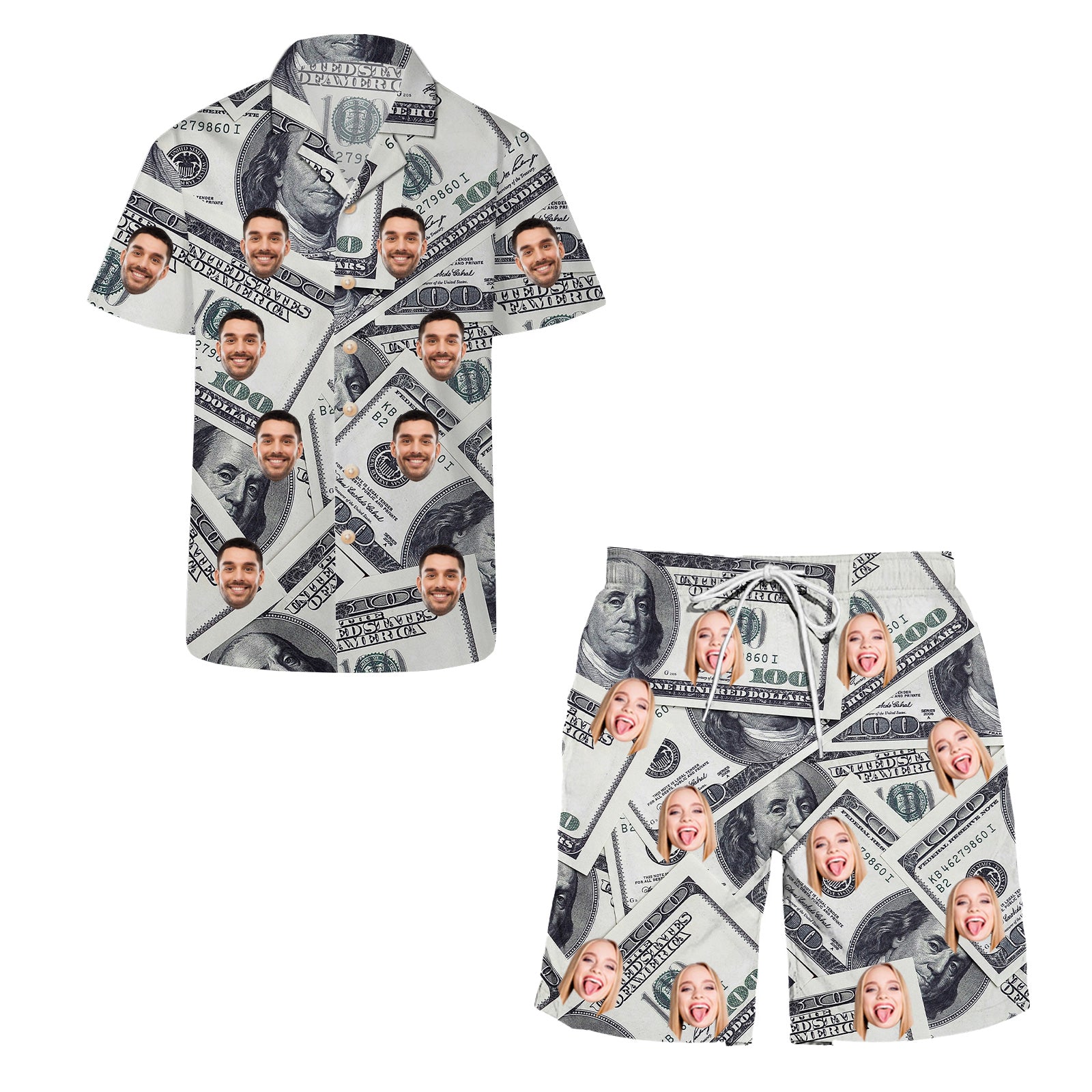 (Tax Included) Men's Dollar Bill Printed Beach Suit Shirt & Shorts Customized Face