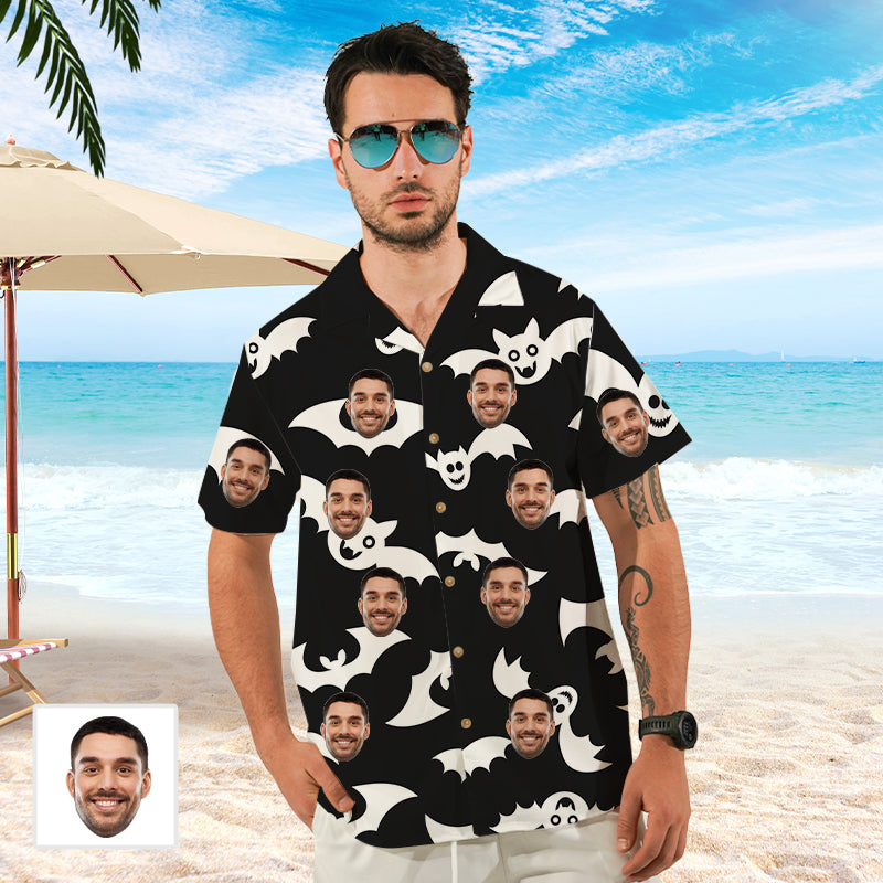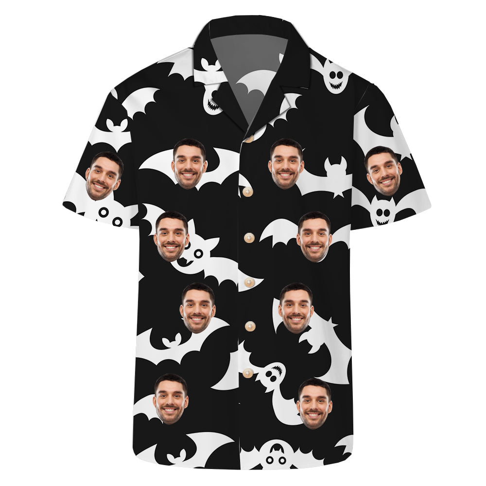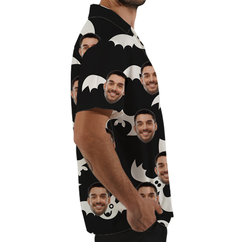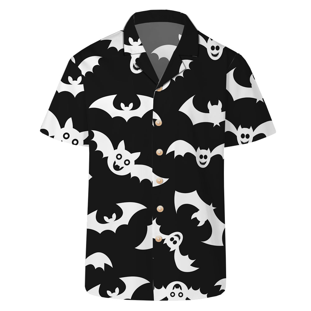 (Tax Included) Men's Lapel Shirt Personalized Bat Design Soft Breathable Casual Wear Customizable Face