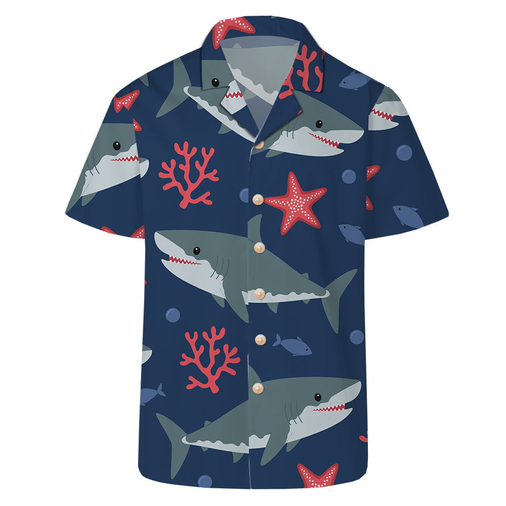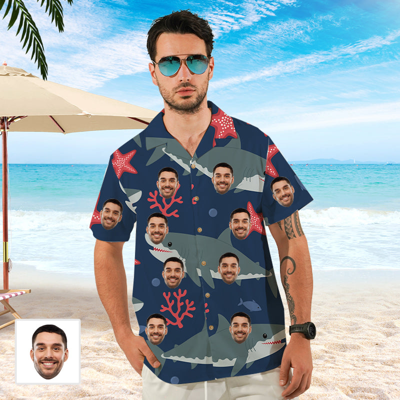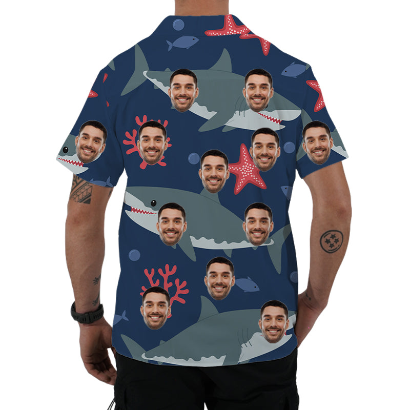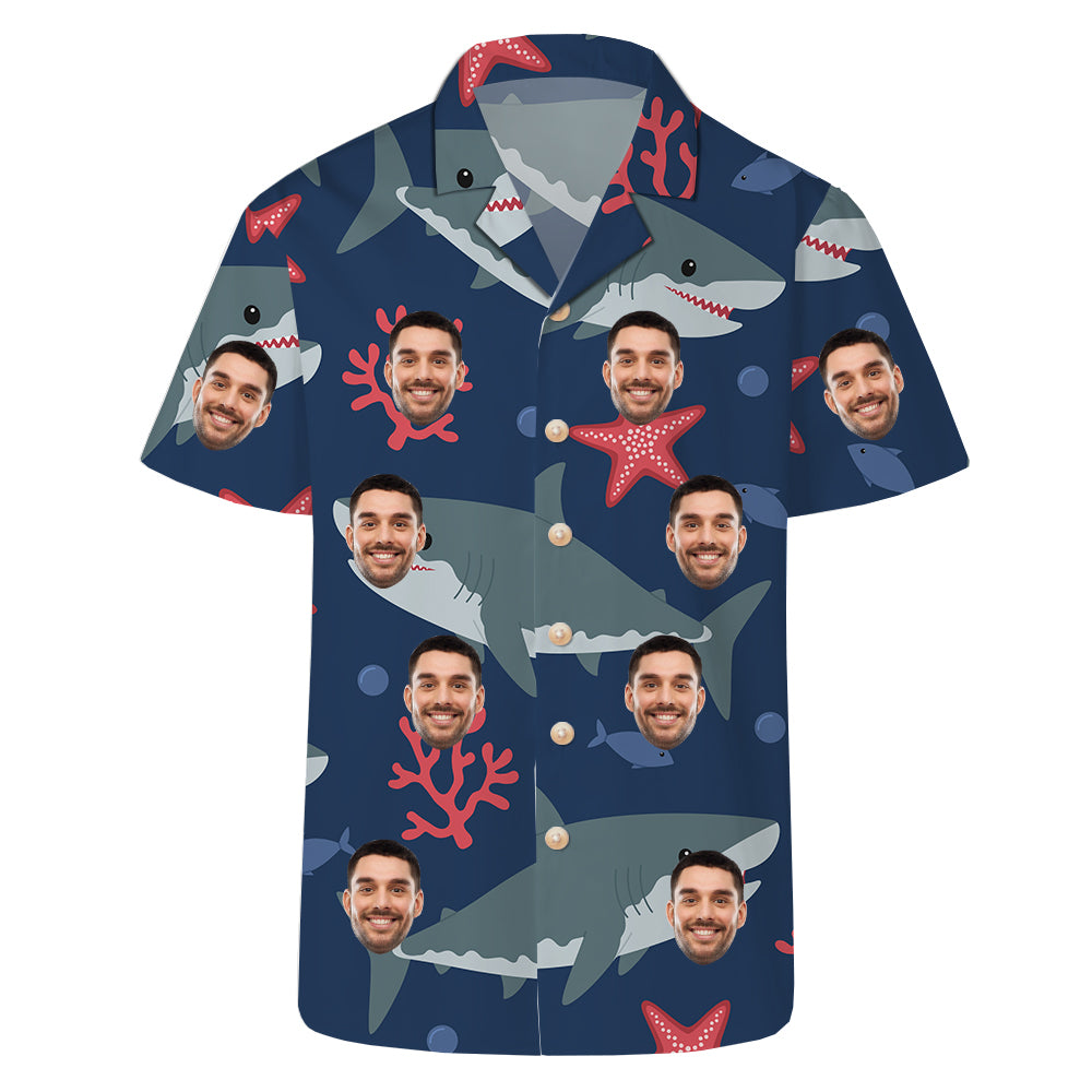 (Tax Included) Men's Retro Shark Print Shirt Resort Style Customizable Face