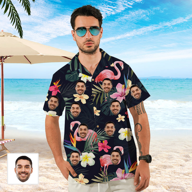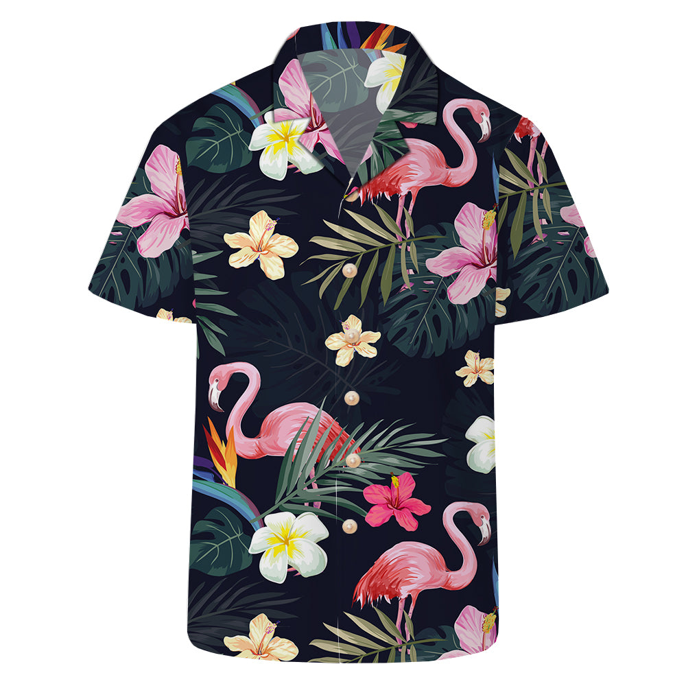(Tax Included) Men's Shirts Floral And Flamingo Prints Soft And Breathable Customizable Faces