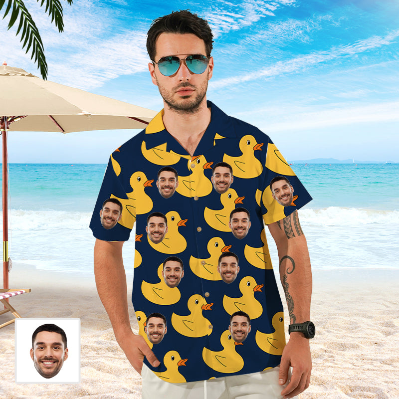 (Tax Included) Men's Summer Casual Duck Print Beach Shirt Suitable For Casual Weekend Wear Customizable Face