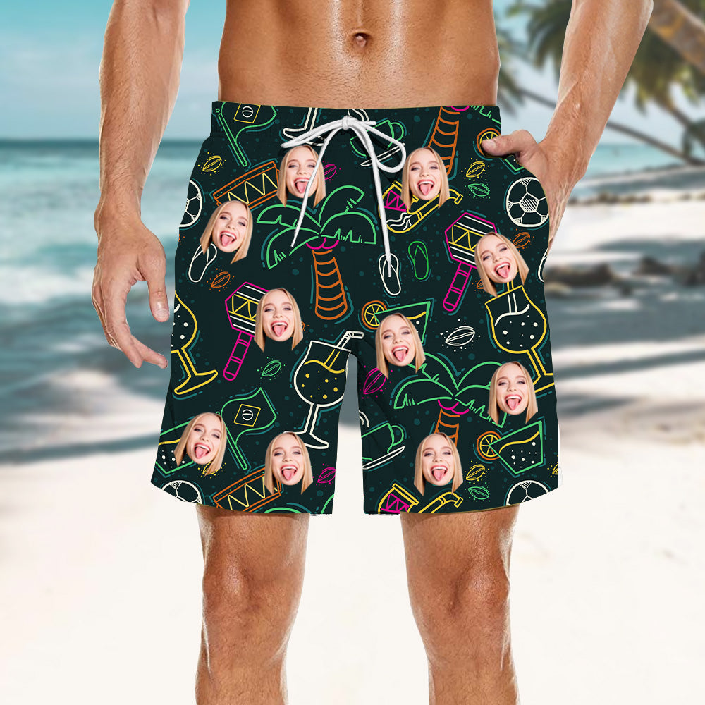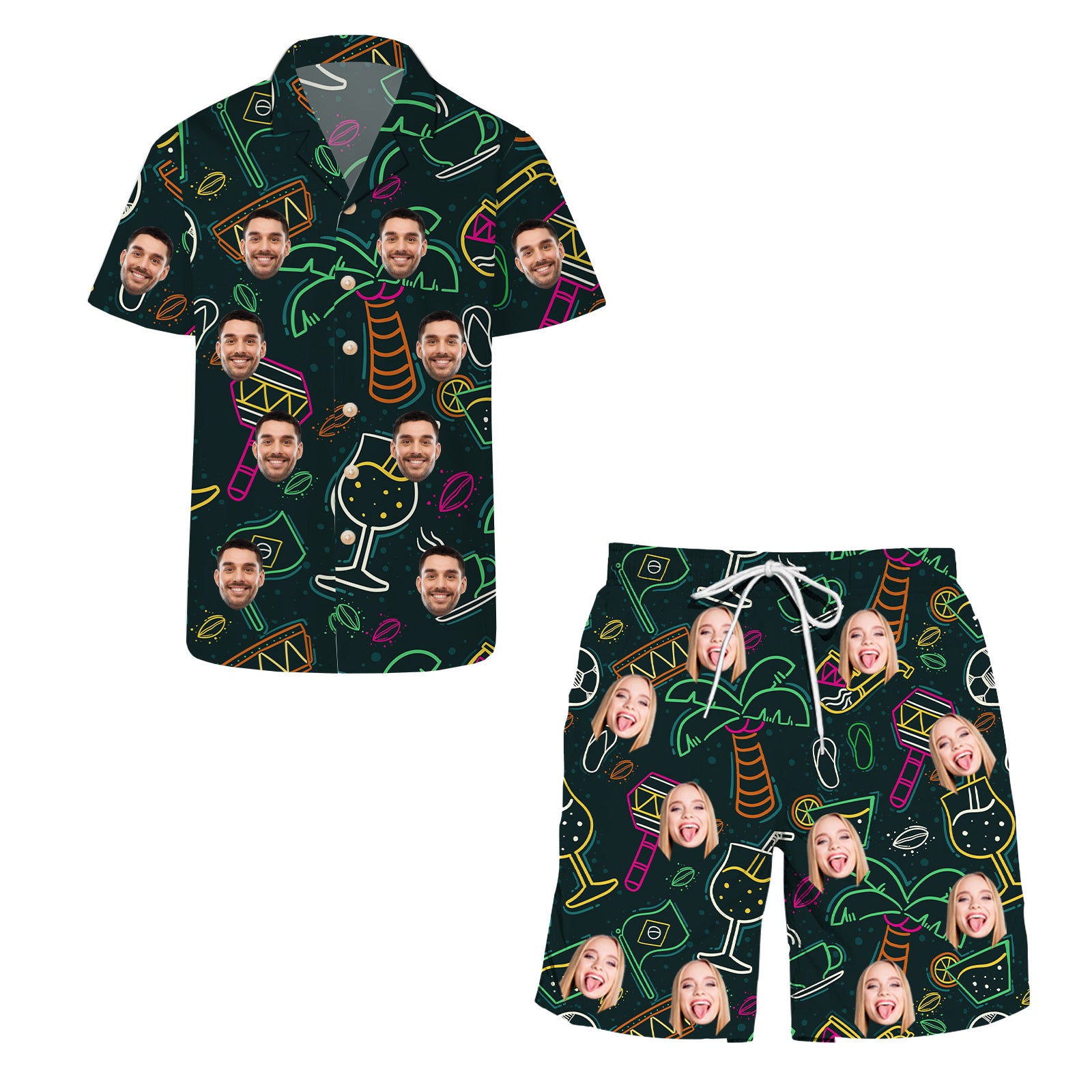 (Tax Included) Neon Beer Party Set - Shirt & Shorts With Custom Face First Choice For Special Days
