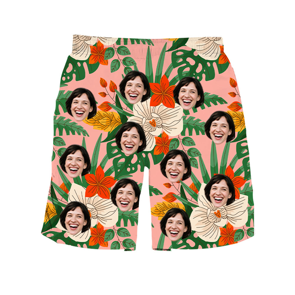 - Either to get a smile out of you or to use every day, you are going to love our custom beach shorts with photo. They are made with the best material and super soft you will enjoy wearing. Customize your beach shorts with your favorite photo face and make the perfect gift! Make the perfect beach shorts for family and friends that they will never forget about.