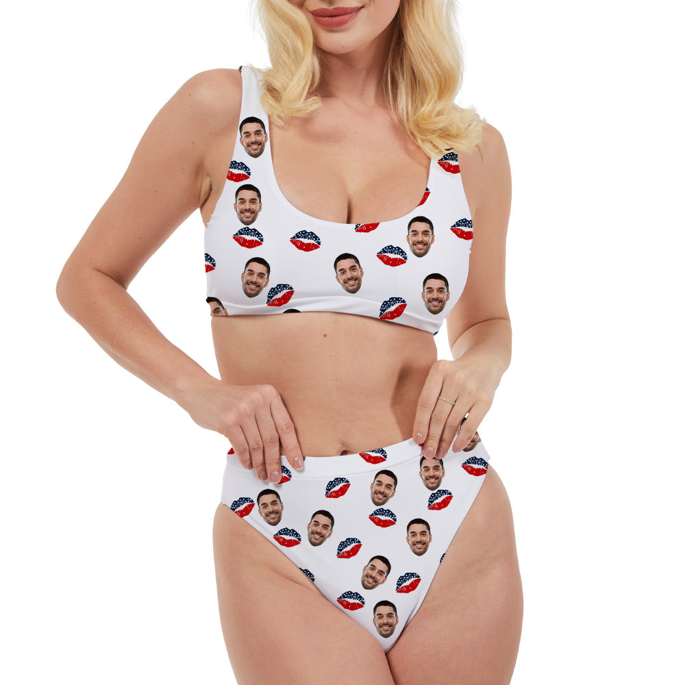 (Tax Included) Personalized Custom Face Bikini Unique 4th July American Flag Swimwear