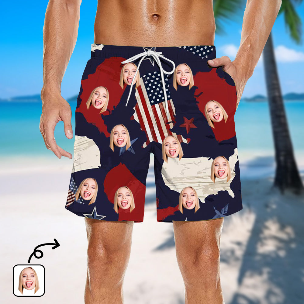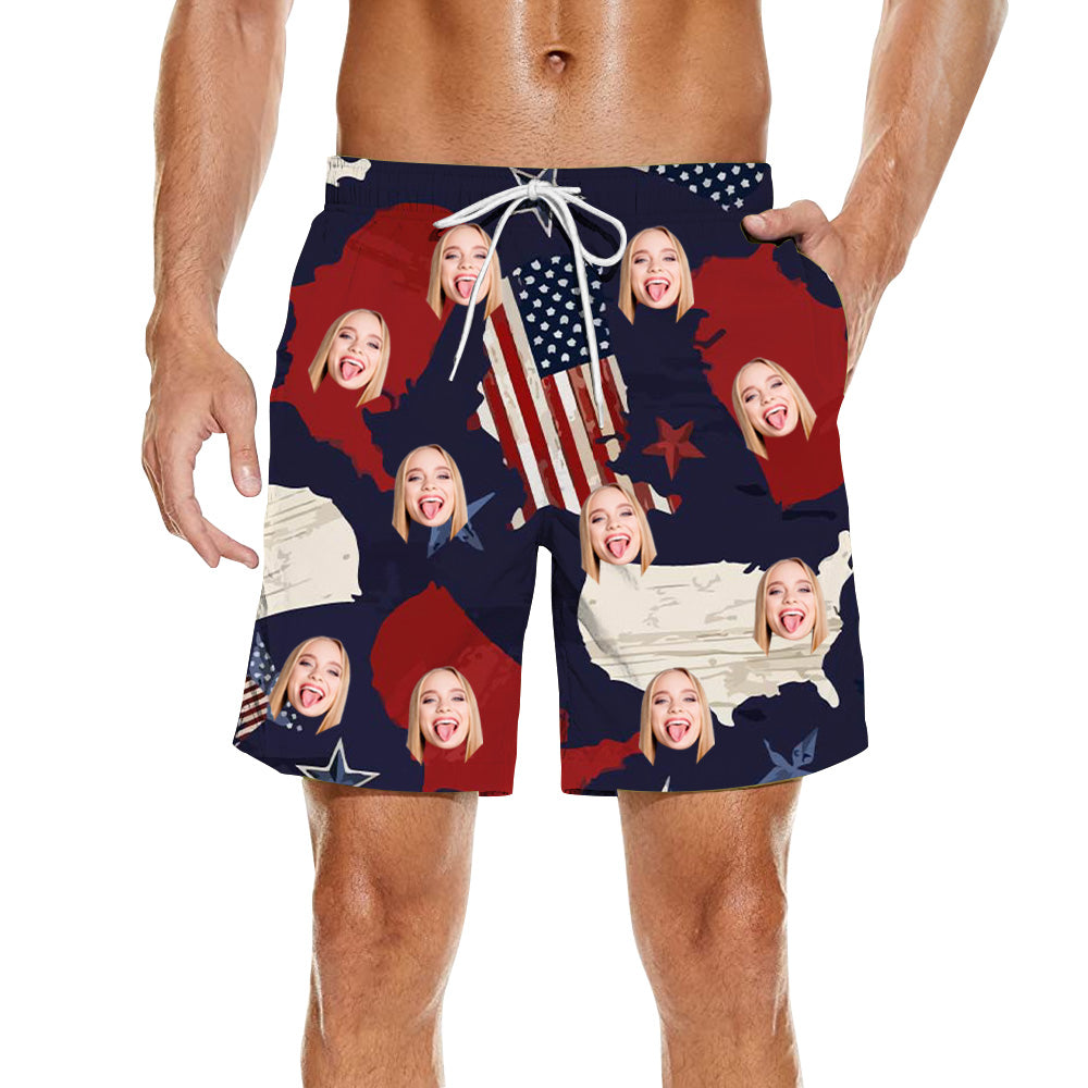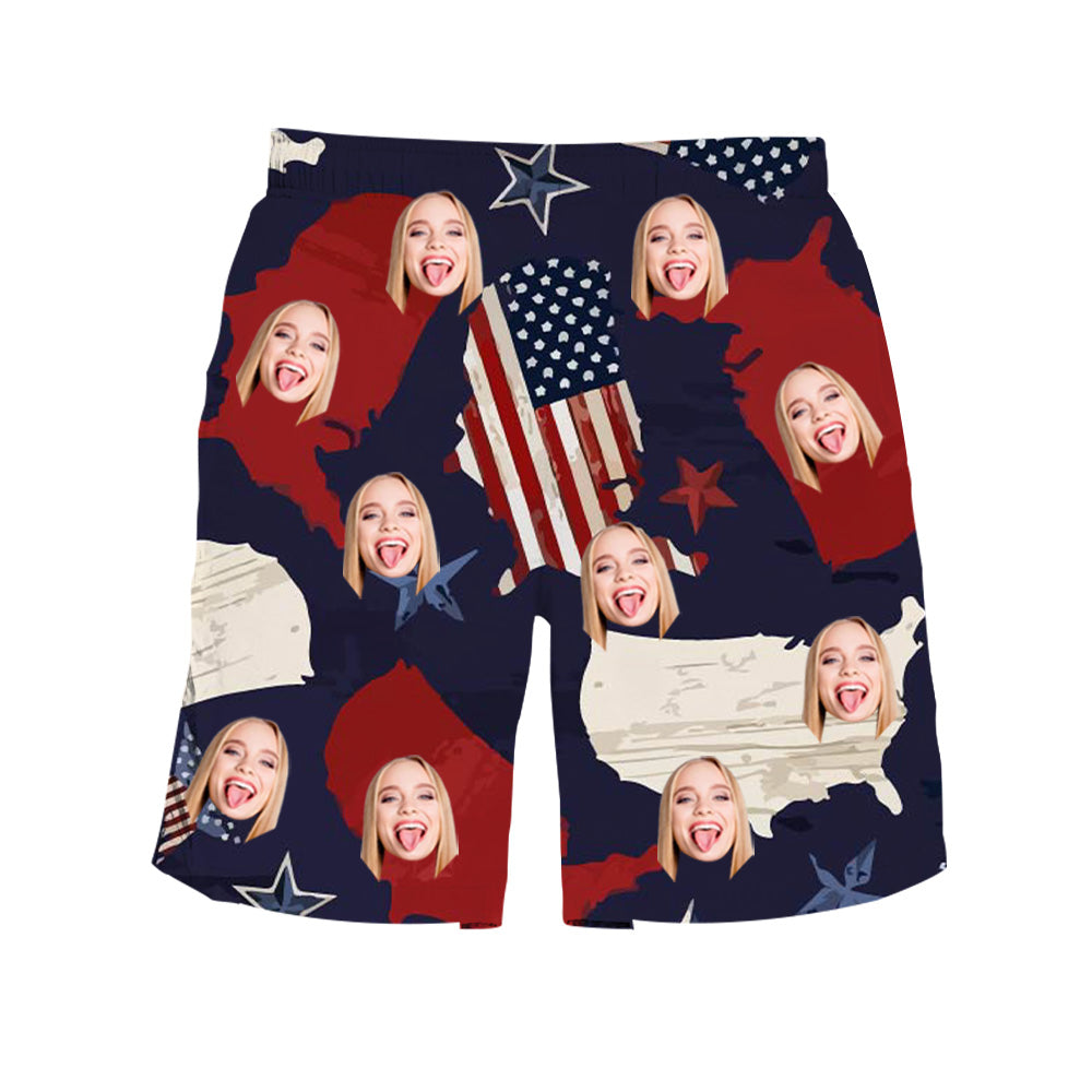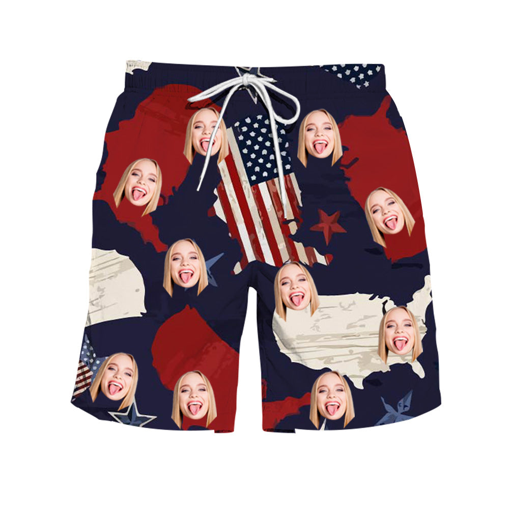 (Tax Included) Personalized Custom Face USA Flag Beach Shorts For Independence Day Getaways