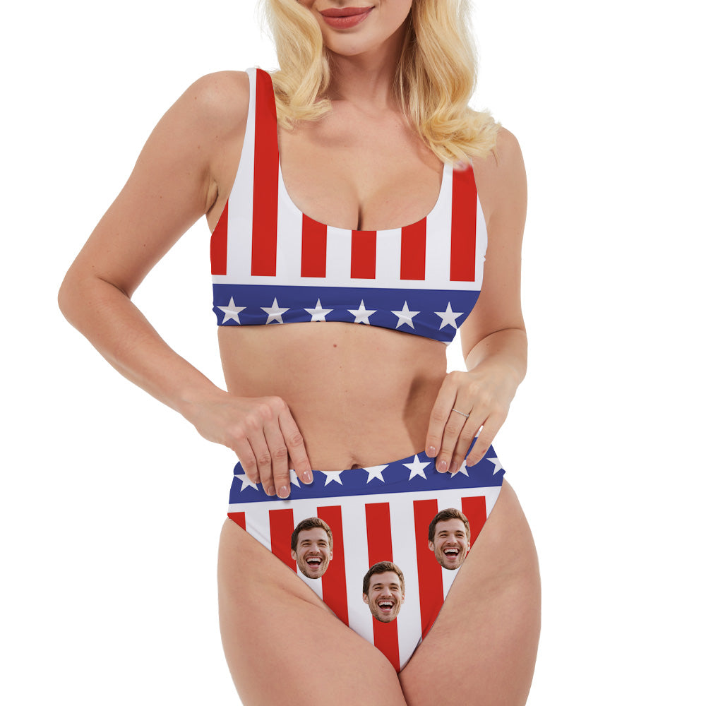 (Tax Included) Personalized Two-Piece Swimsuit With Your Star-Spangled Face