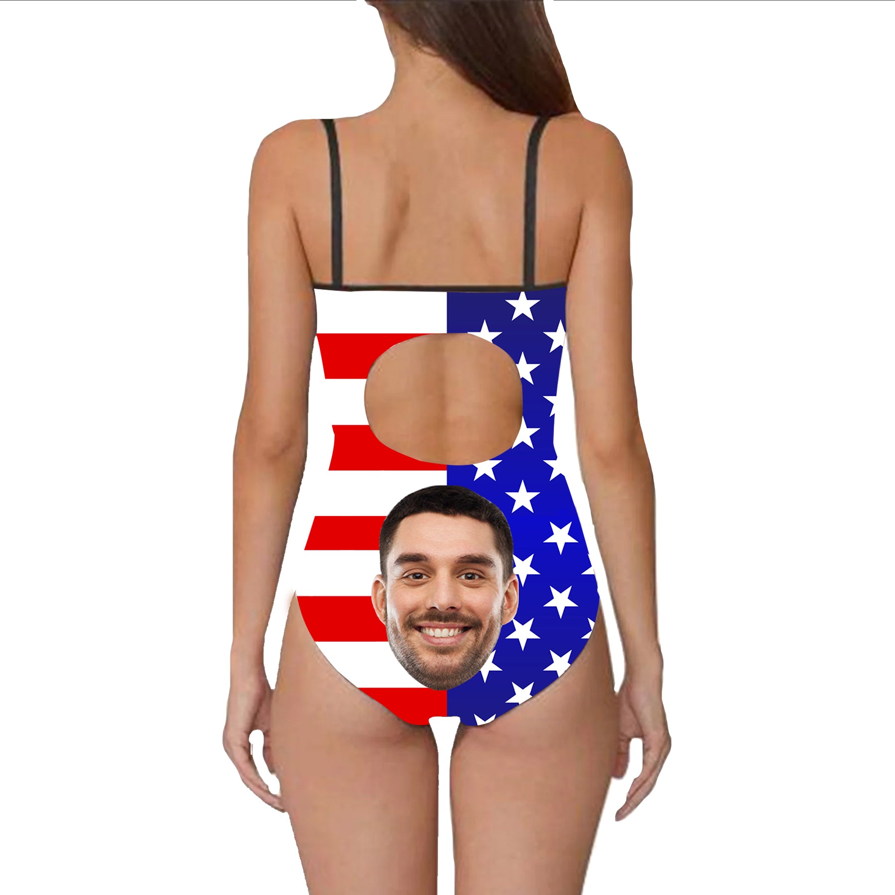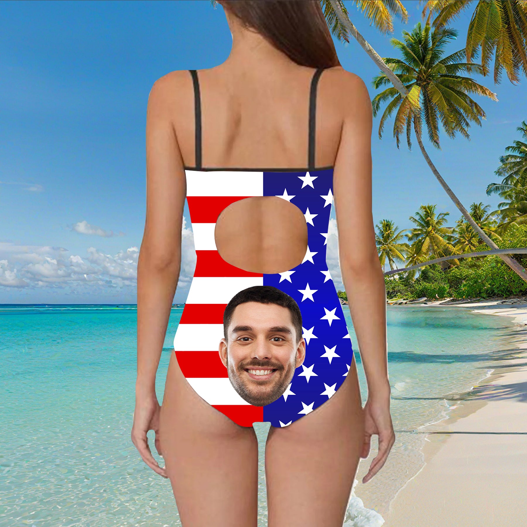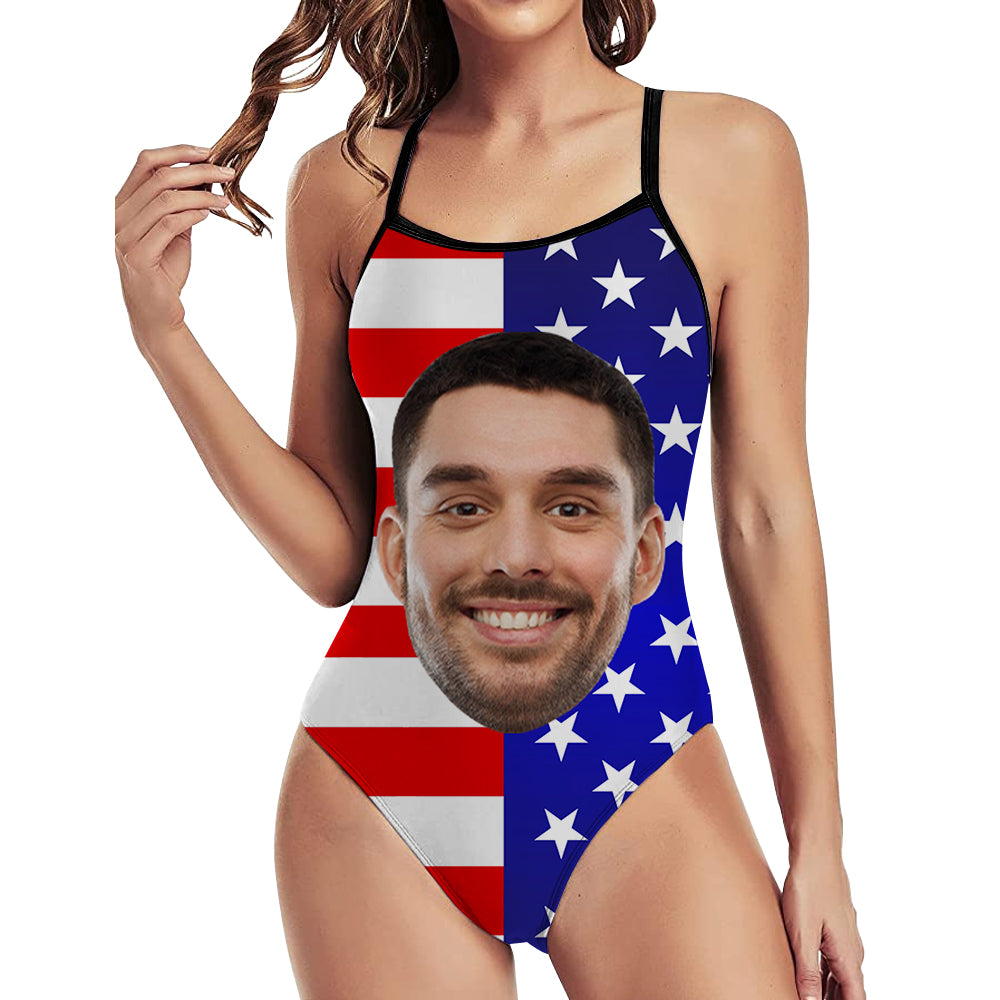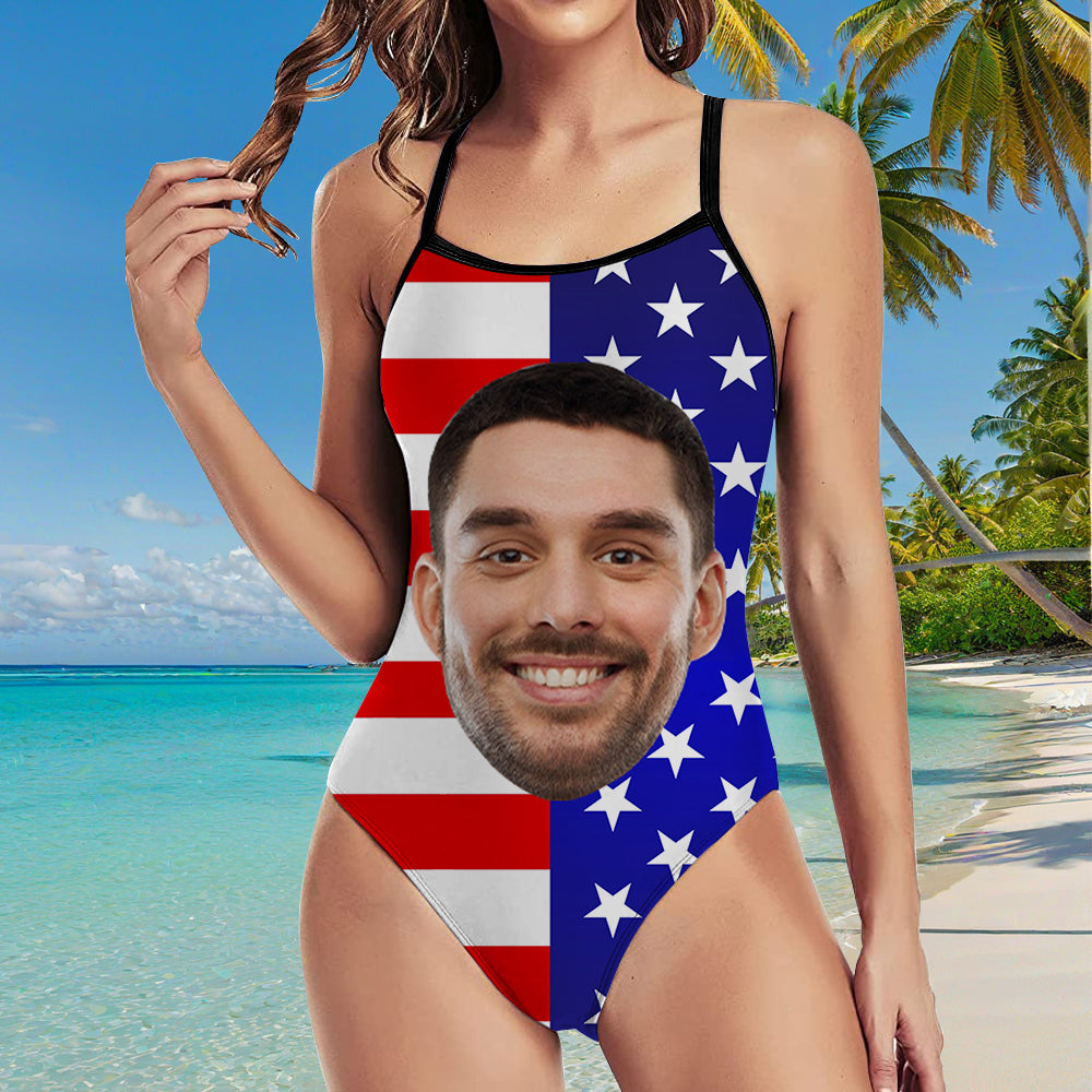 (Tax Included) Red White Blue One Piece Swimsuit Independence Day Custom Face Print Summer Beach Focus