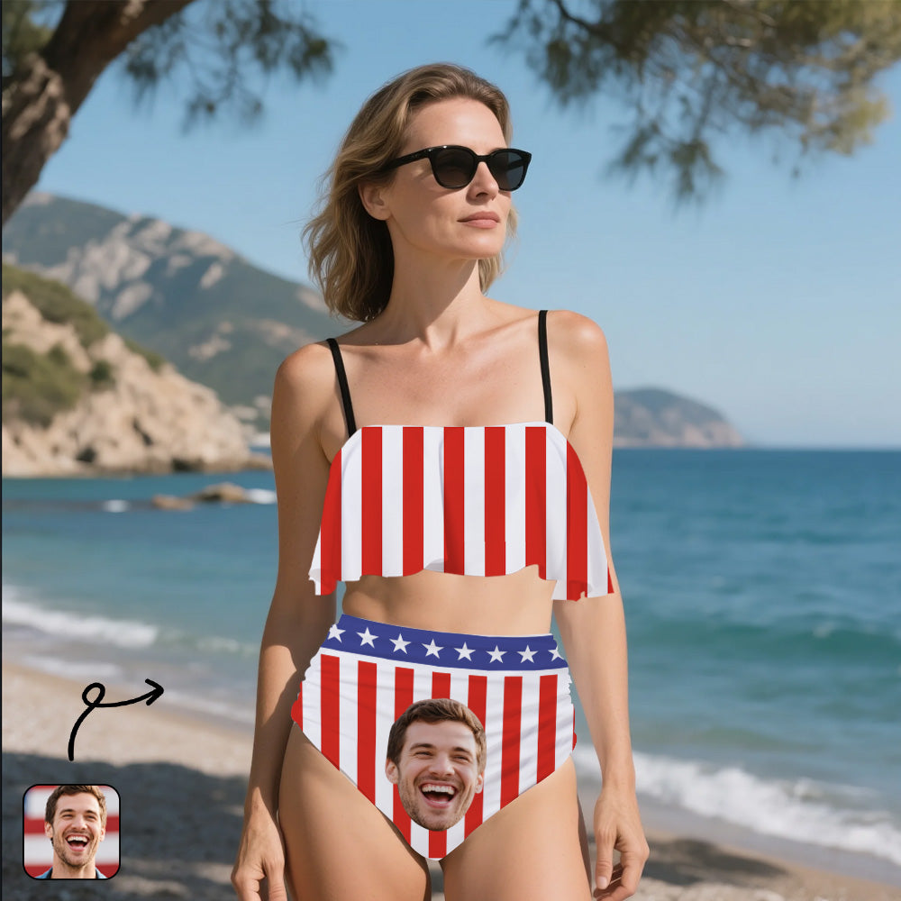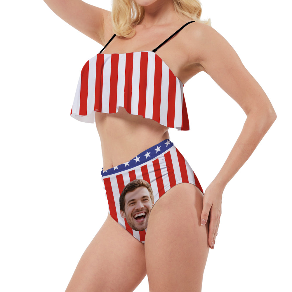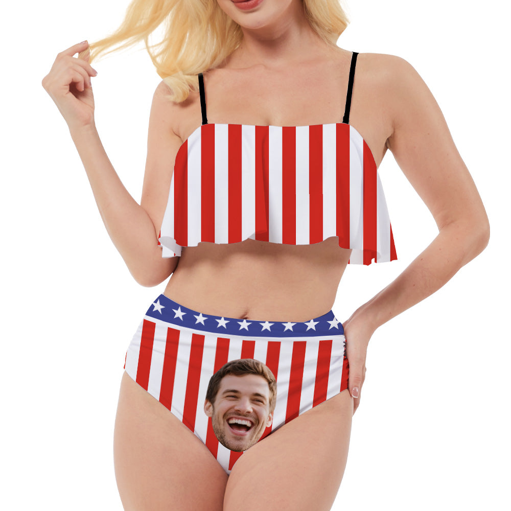 (Tax Included) Star-Spangled Ruffle Bikini Set With Custom Face