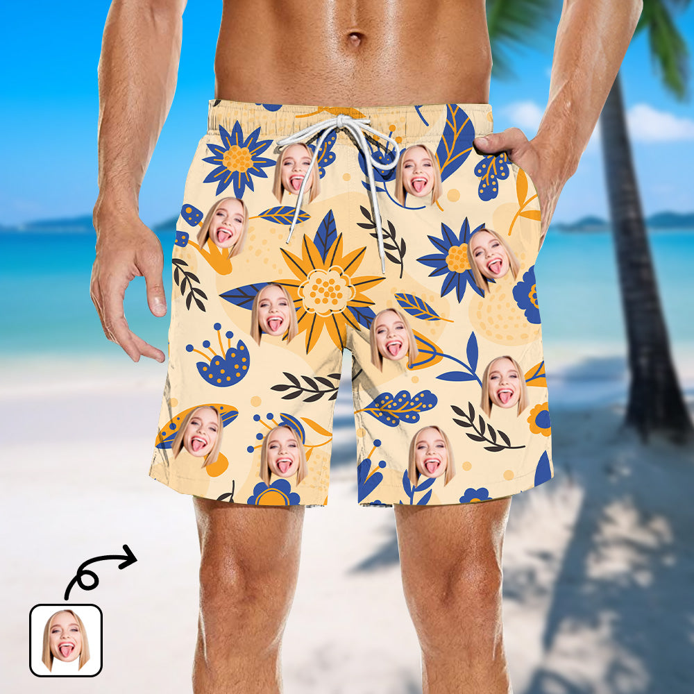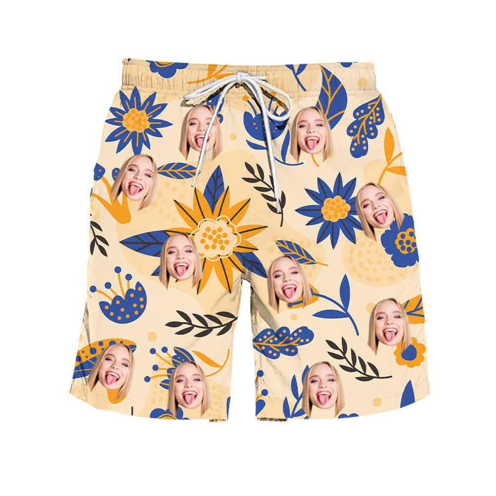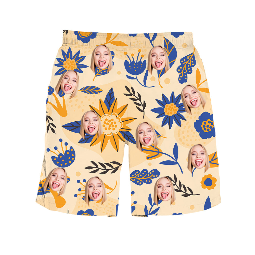 - Either to get a smile out of you or to use every day, you are going to love our custom beach shorts with photo. They are made with the best material and super soft you will enjoy wearing. Customize your beach shorts with your favorite photo face and make the perfect gift! Make the perfect beach shorts for family and friends that they will never forget about.