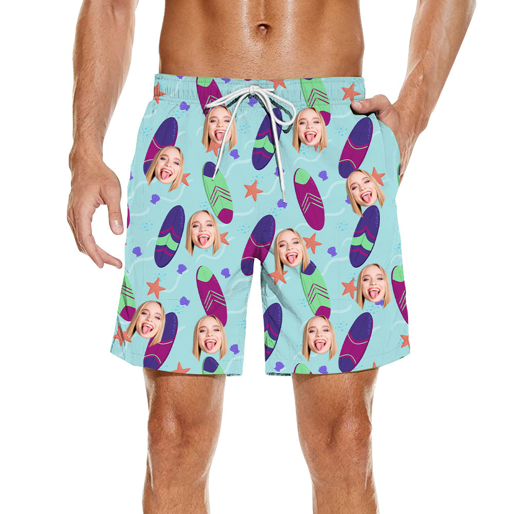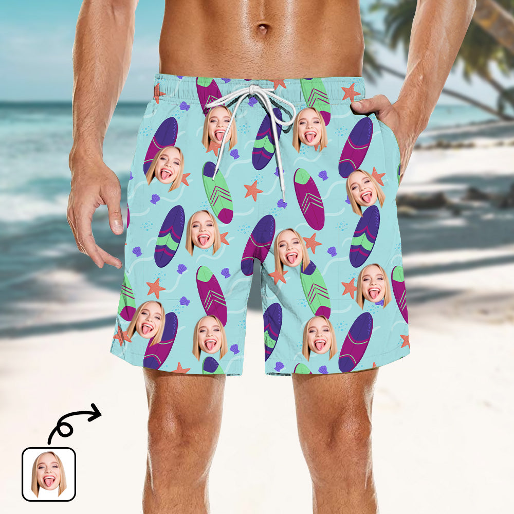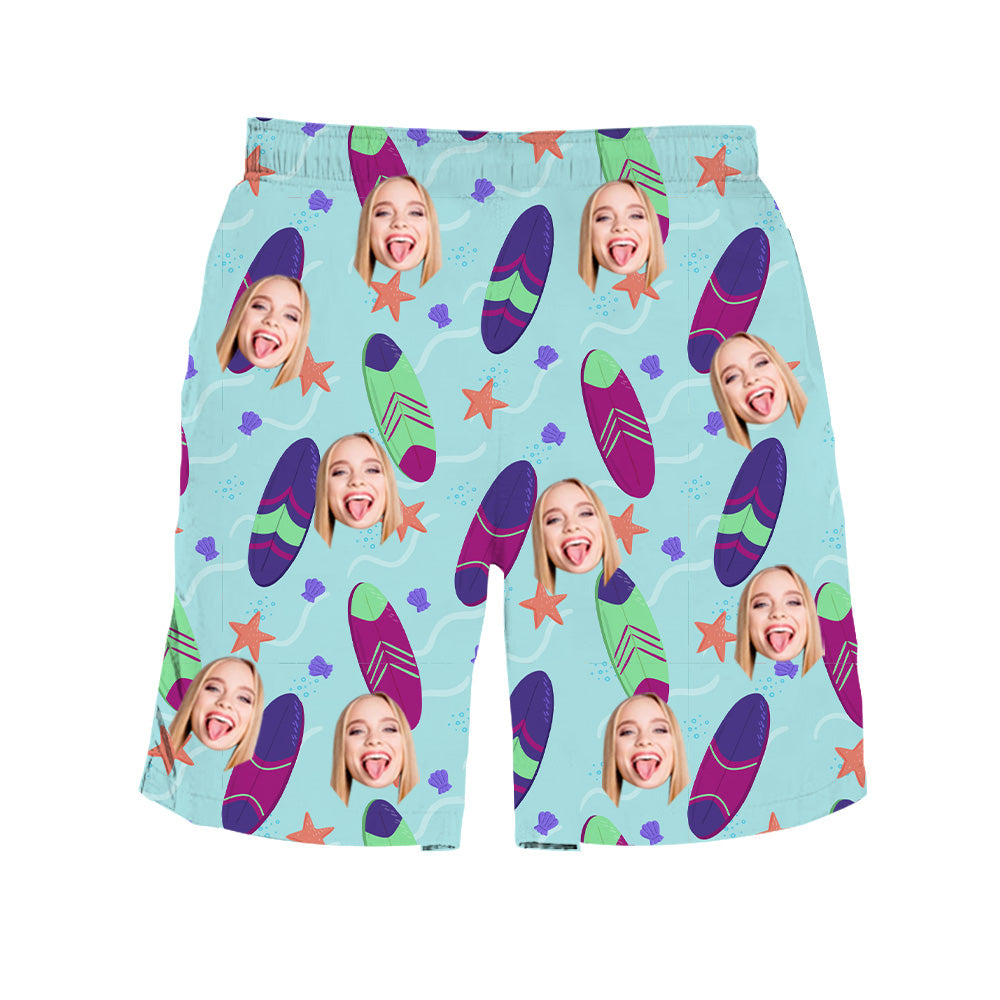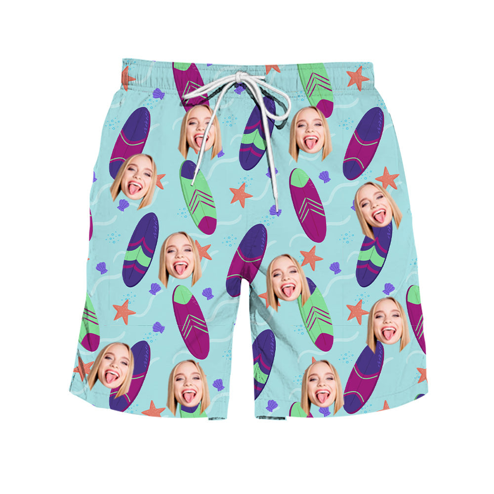 - Either to get a smile out of you or to use every day, you are going to love our custom beach shorts with photo. They are made with the best material and super soft you will enjoy wearing. Customize your beach shorts with your favorite photo face and make the perfect gift! Make the perfect beach shorts for family and friends that they will never forget about.