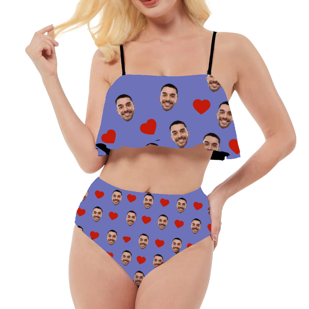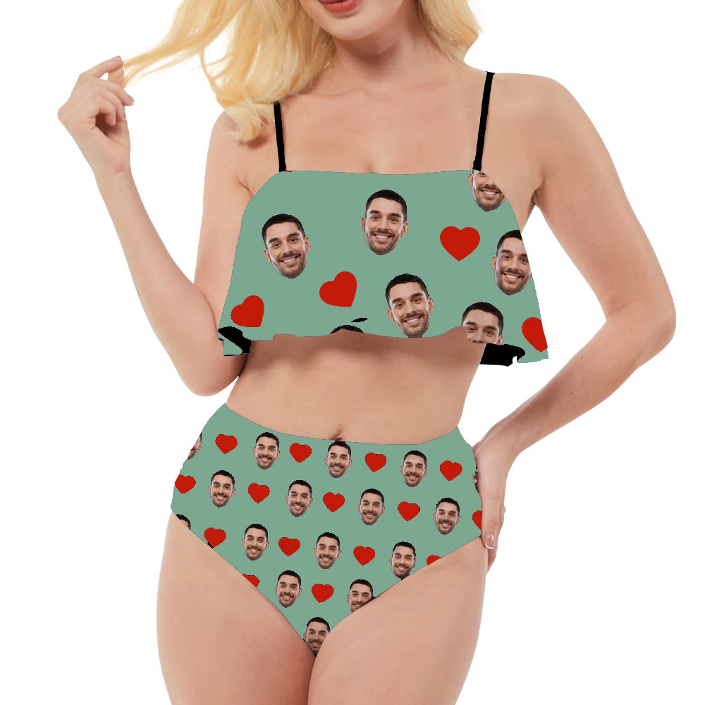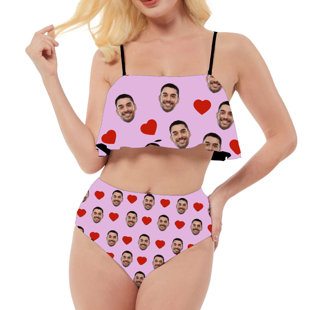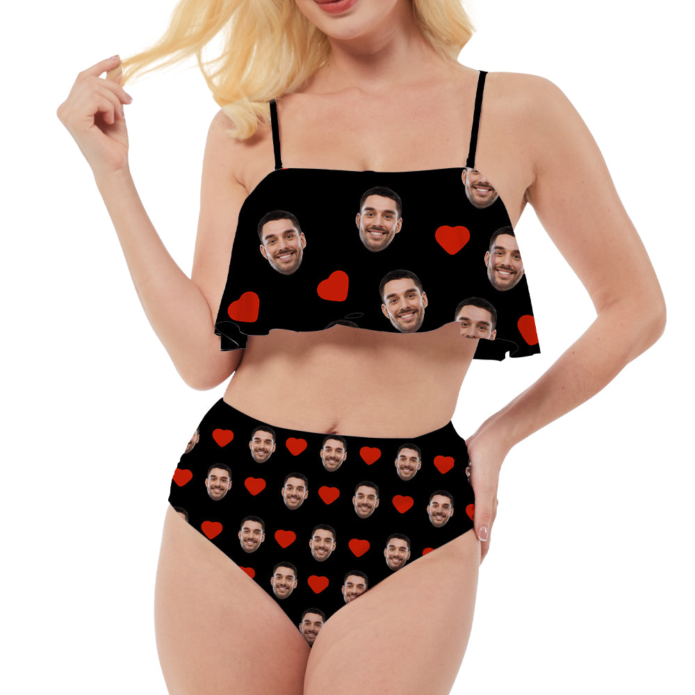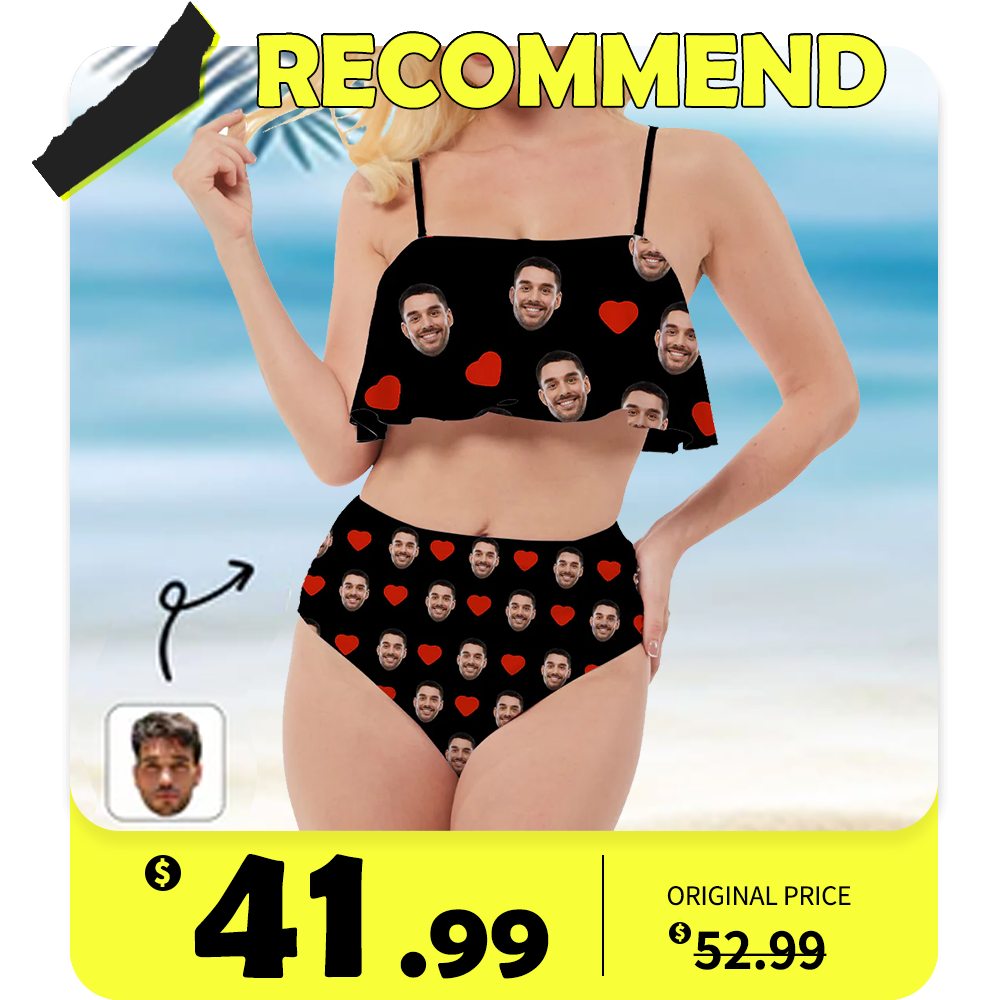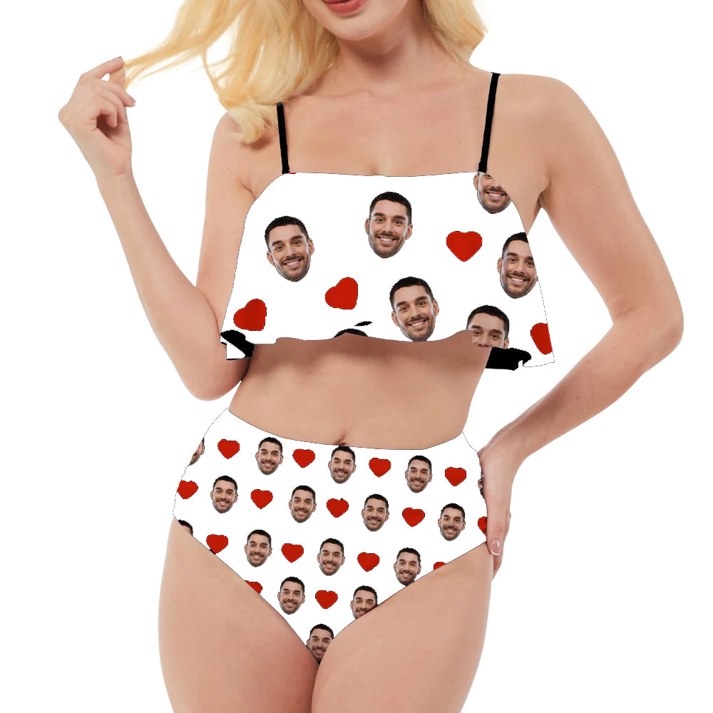 (Tax Included) Summer Sale- Custom Face Red Heart Ruffle Swimsuit
