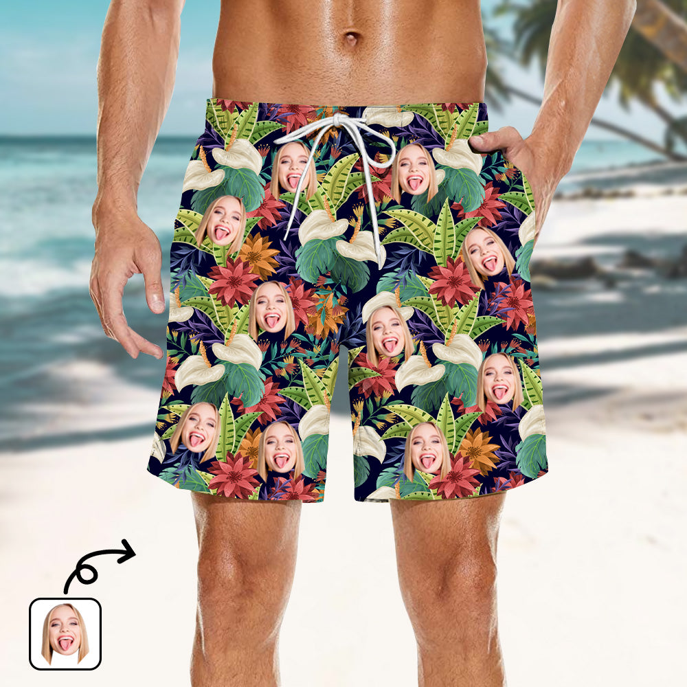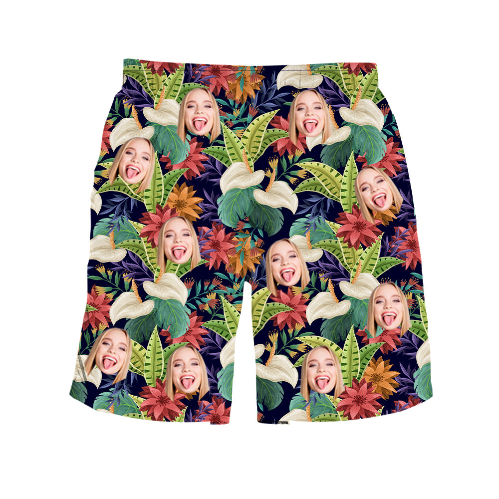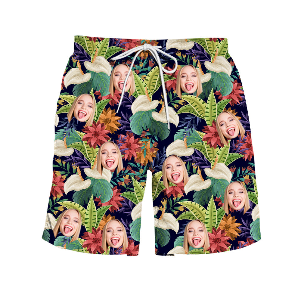 - Either to get a smile out of you or to use every day, you are going to love our custom beach shorts with photo. They are made with the best material and super soft you will enjoy wearing. Customize your beach shorts with your favorite photo face and make the perfect gift! Make the perfect beach shorts for family and friends that they will never forget about.