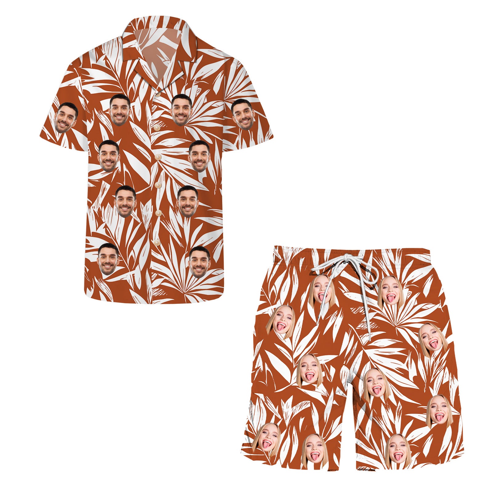 (Tax Included) Tropical Leaves Print Beach Suit Shirt & Shorts Custom Face Hawaiian Party Clothing