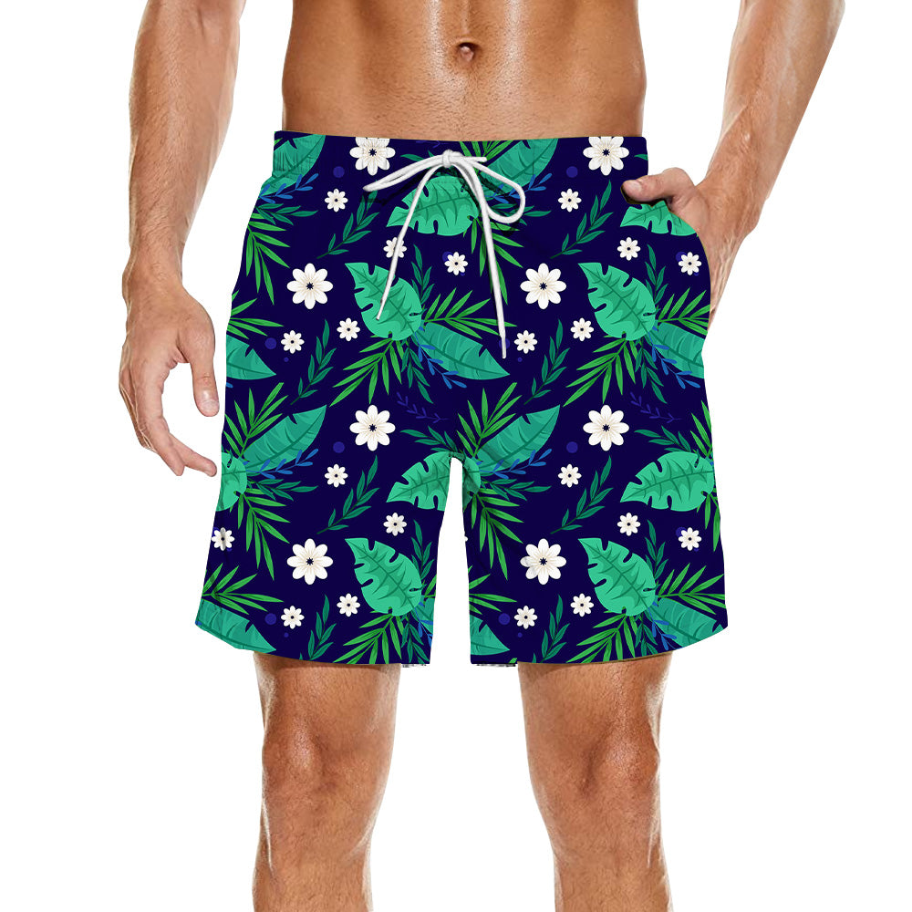 (Tax Included) Unique Custom Face Beach Shorts With Palm Leaves & Flowers For Vacations